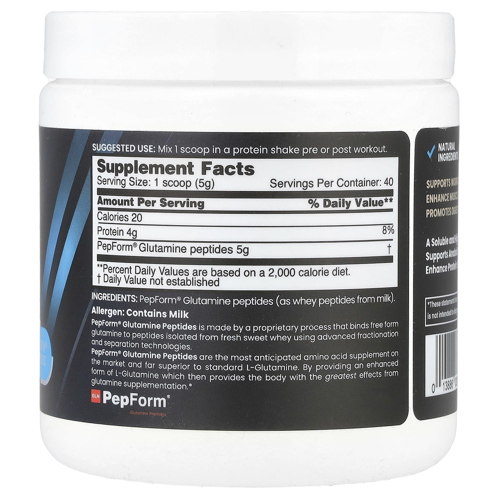 Пептиды глутамина PepForm® (в виде сывороточных пептидов из молока).