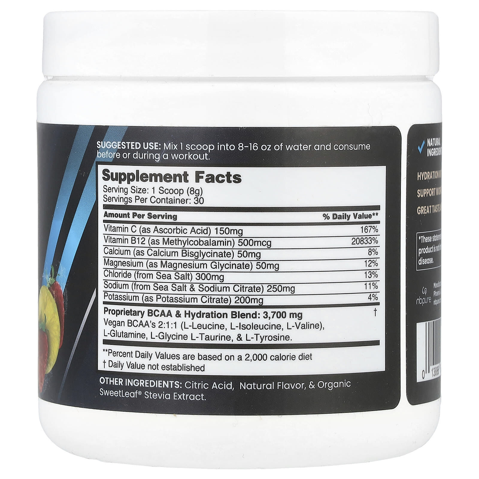Запатентованная смесь BCAA и восполнения потери жидкости Веганские аминокислоты с разветвленной цепью 2:1:1 (L-лейцин, L-изолейцин, L-валин), L-глютамин, L-глицин, L-таурин и L-тирозин | 3700 мг | † |