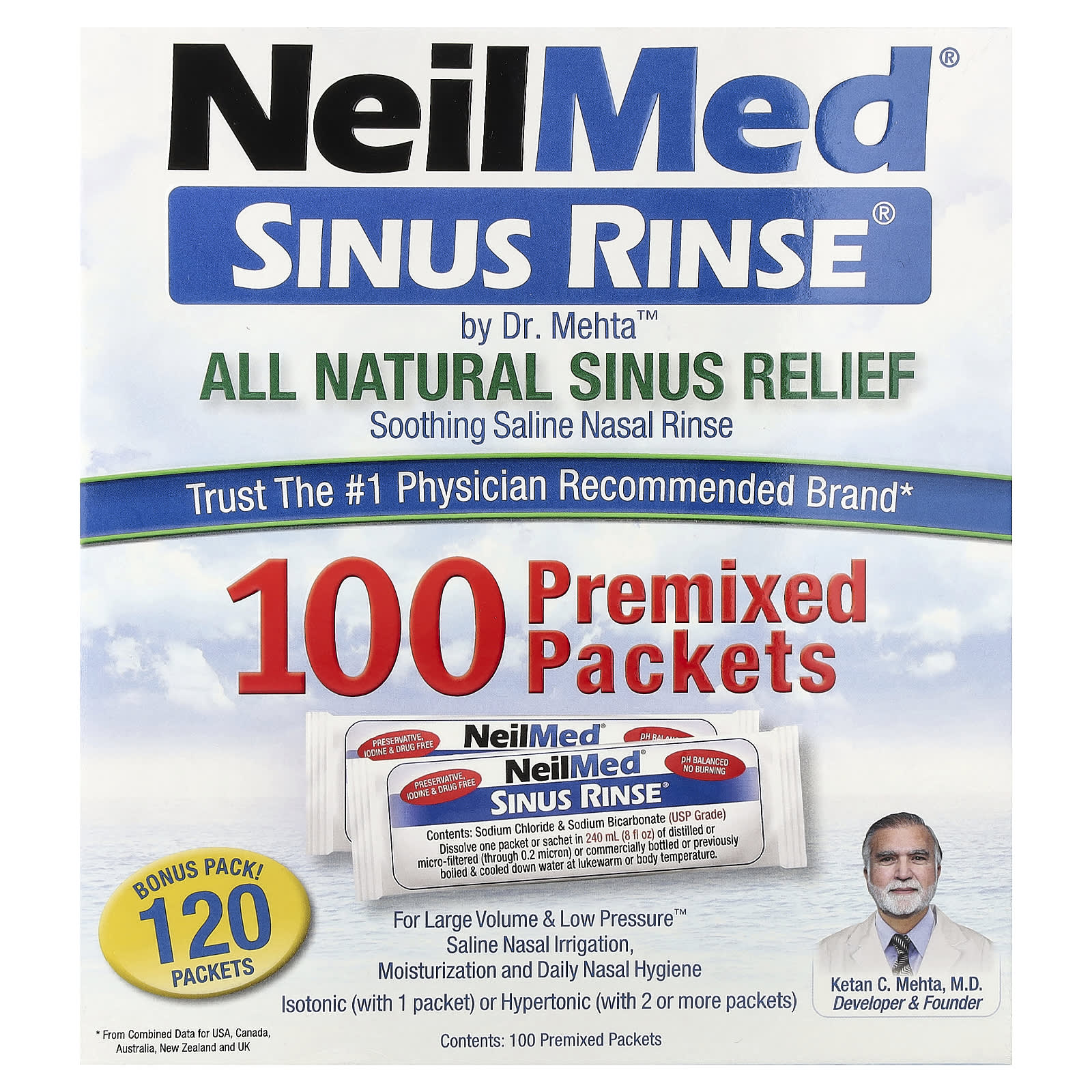 Благодарим вас за приобретение пакетиков со смесью Sinus Rinse™ для промывания носа. Смесь NeilMed® содержит хлорид натрия и бикарбонат натрия высочайшего фармацевтического качества (USP) в каждом пакетике или саше. Основываясь на научных данных за несколько лет и текущих рекомендациях опытных врачей во всём мире, NeilMed® использует только смесь хлорида натрия и бикарбоната натрия.