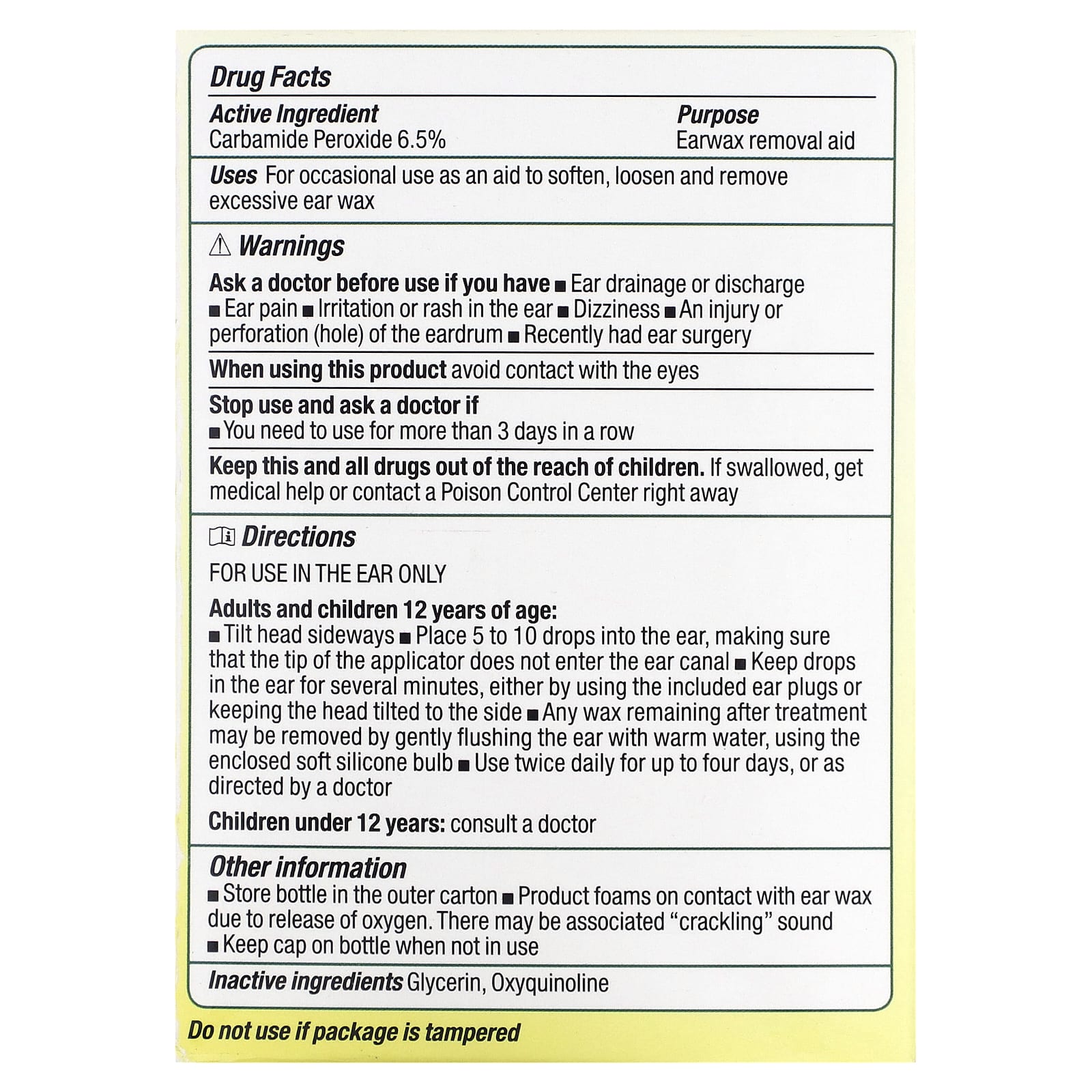 - 1 флакон ушных капель, 15 мл (0,5 жидк. унц.)