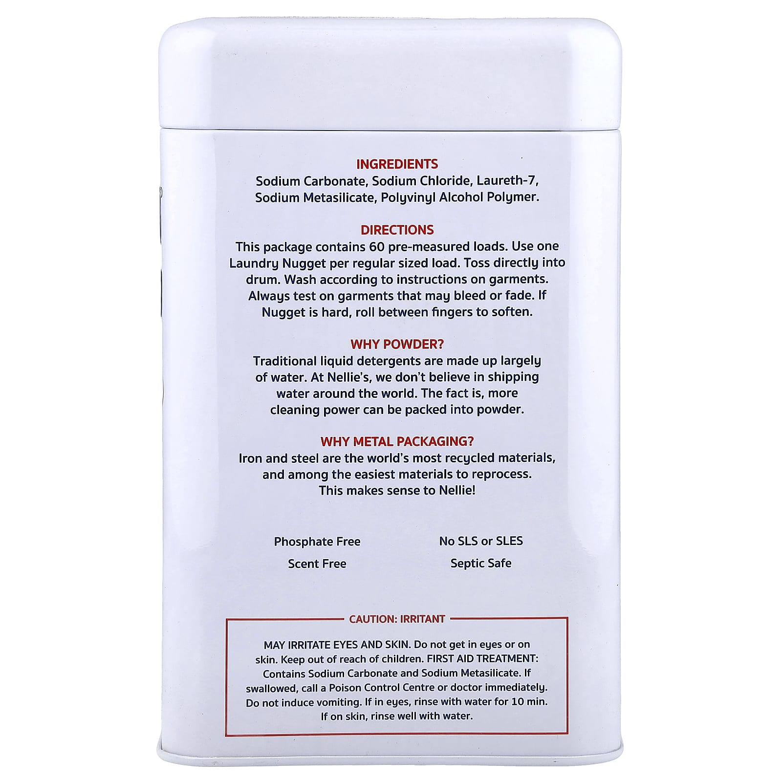 This package contains 60 pre-measured loads. Use one Laundry Nugget per regular sized load. Toss directly into drum. Wash according to instructions on garments.