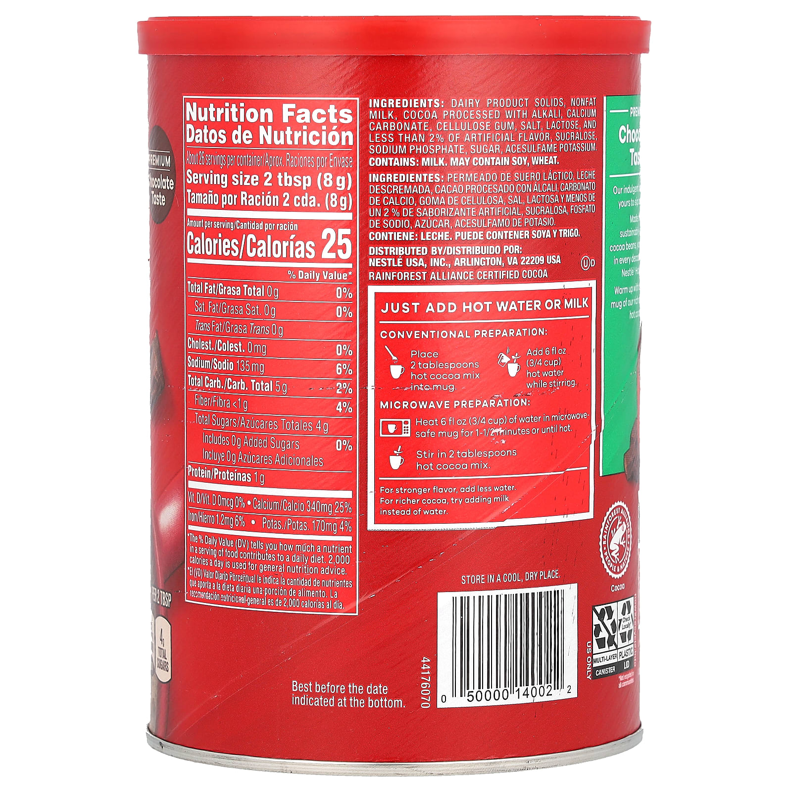 Сухие молочные продукты, обезжиренное молоко, обработанное щелочью какао, карбонат кальция, целлюлозная камедь, соль, лактоза, ингредиенты, содержание которых менее 2%: искусственные ароматизаторы, сукралоза, фосфат натрия, сахар, ацесульфам калия.