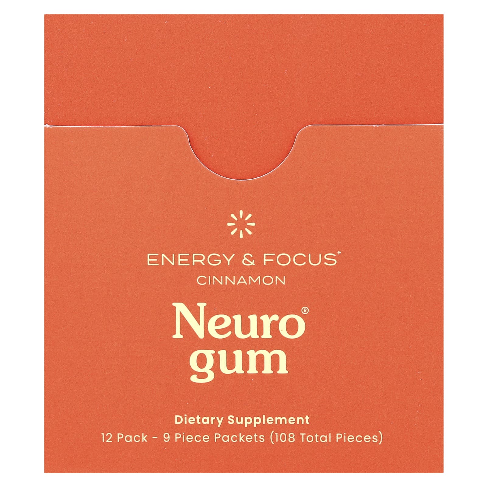 NeuroGum, Energy & Focus, корица, 12 пакетиков по 9 шт.