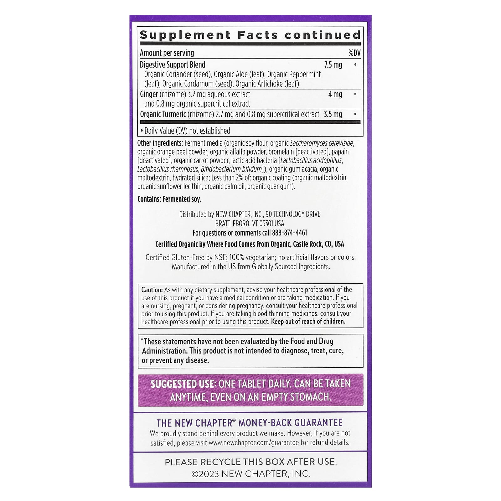 Ферментированная среда (органическая соевая мука, органические пекарские дрожжи (Saccharomyces cerevisiae), органический порошок из цедры апельсина, органический порошок из люцерны, бромелаин [деактивированный], папаин [деактивированный], порошок из органической моркови, молочнокислые бактерии [ацидофильные лактобактерии (Lactobacillus acidophilus), лактобактерии рамнозус (Lactobacillus rhamnosus), бифидобактерии бифидум (Bifidobacterium bifidum)], органическая аравийская камедь, органический мальтодекстрин, гидратированный диоксид кремния; менее 2% таких ингредиентов: органическая оболочка (органический мальтодекстрин, органический подсолнечный лецитин, органическое пальмовое масло, органическая гуаровая камедь).