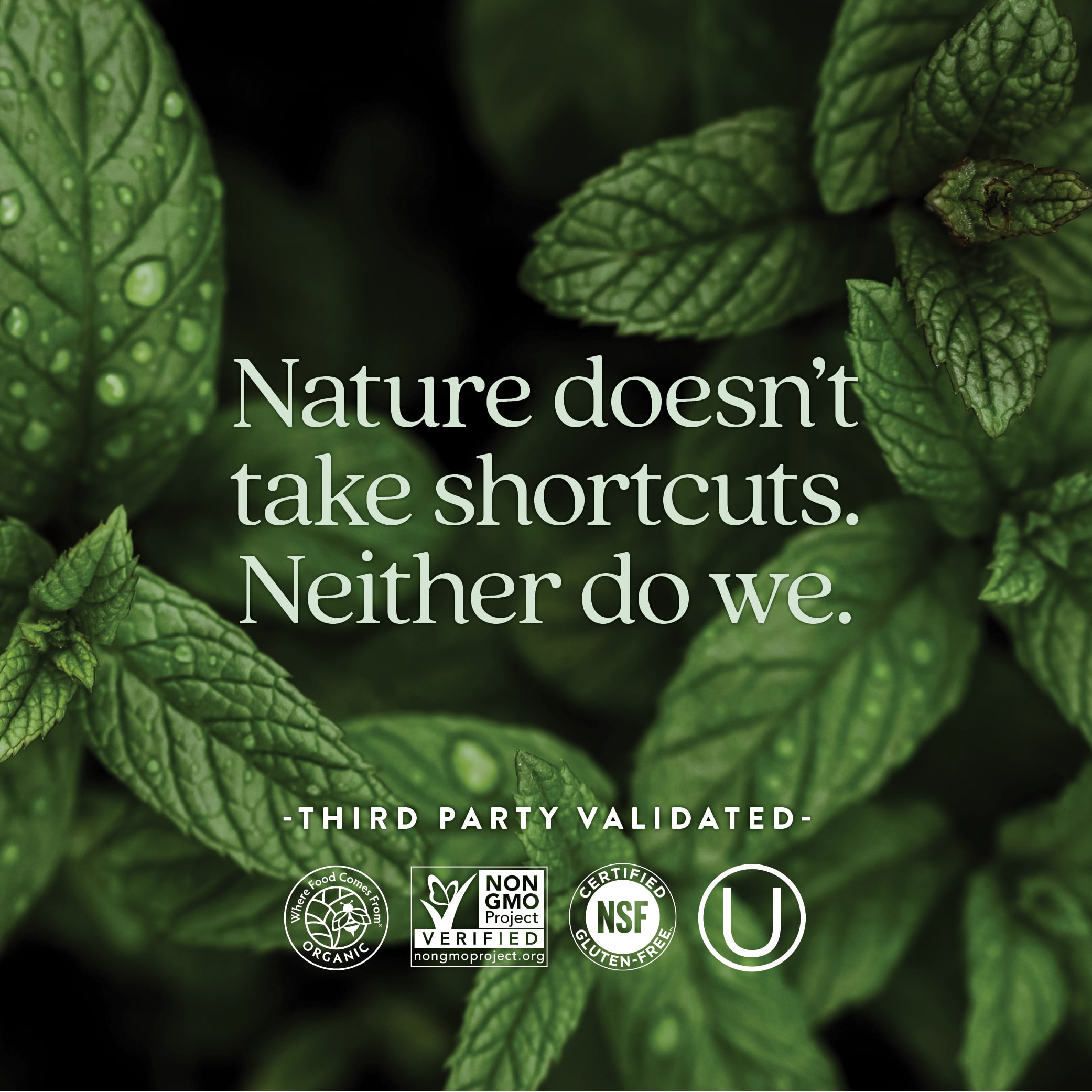 Следуя традициям и полагаясь на научные исследования, мы используем современные органические растения, в том числе куркуму, красный клевер и листья малины.