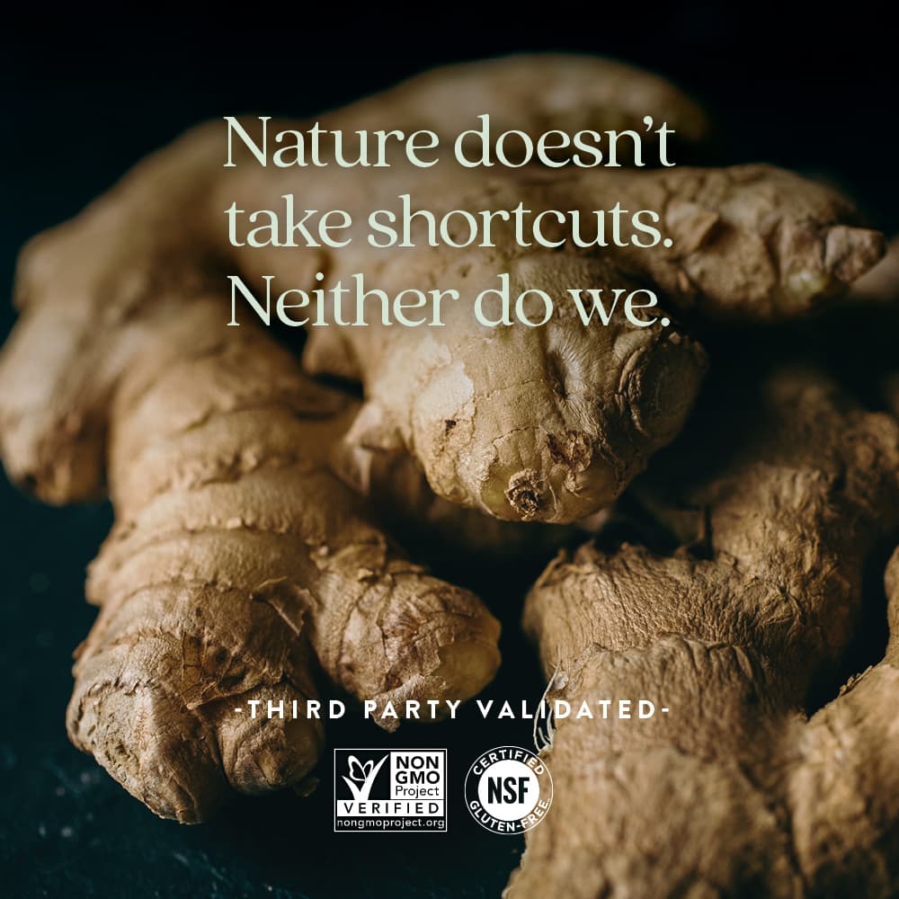 - Изготовлено из имбиря, выращенного регенеративным способом