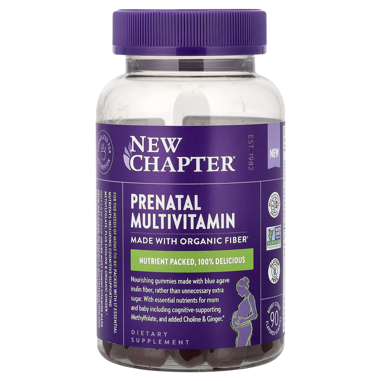 Питательные жевательные таблетки, содержащие клетчатку инулина из голубой агавы, а не ненужный дополнительный сахар. Содержит необходимые питательные вещества для мамы и ребенка, в том числе метилфолат, поддерживающий когнитивные функции, а также холин и имбирь.
