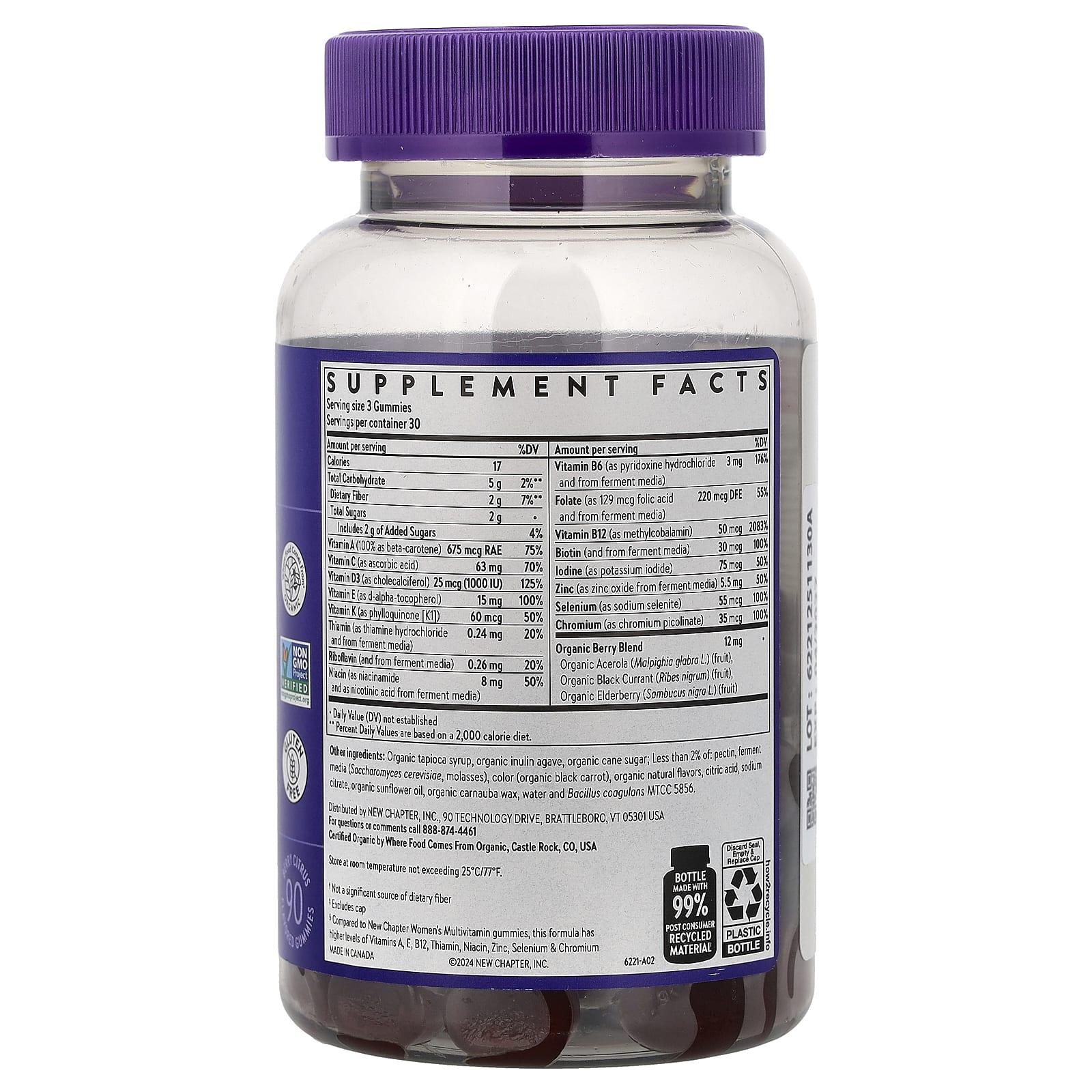 §По сравнению с мультивитаминными жевательными таблетками New Chapter для женщин, эта формула содержит более высокий уровень витаминов A, E, B12, тиамина, ниацина, цинка, селена и хрома.
