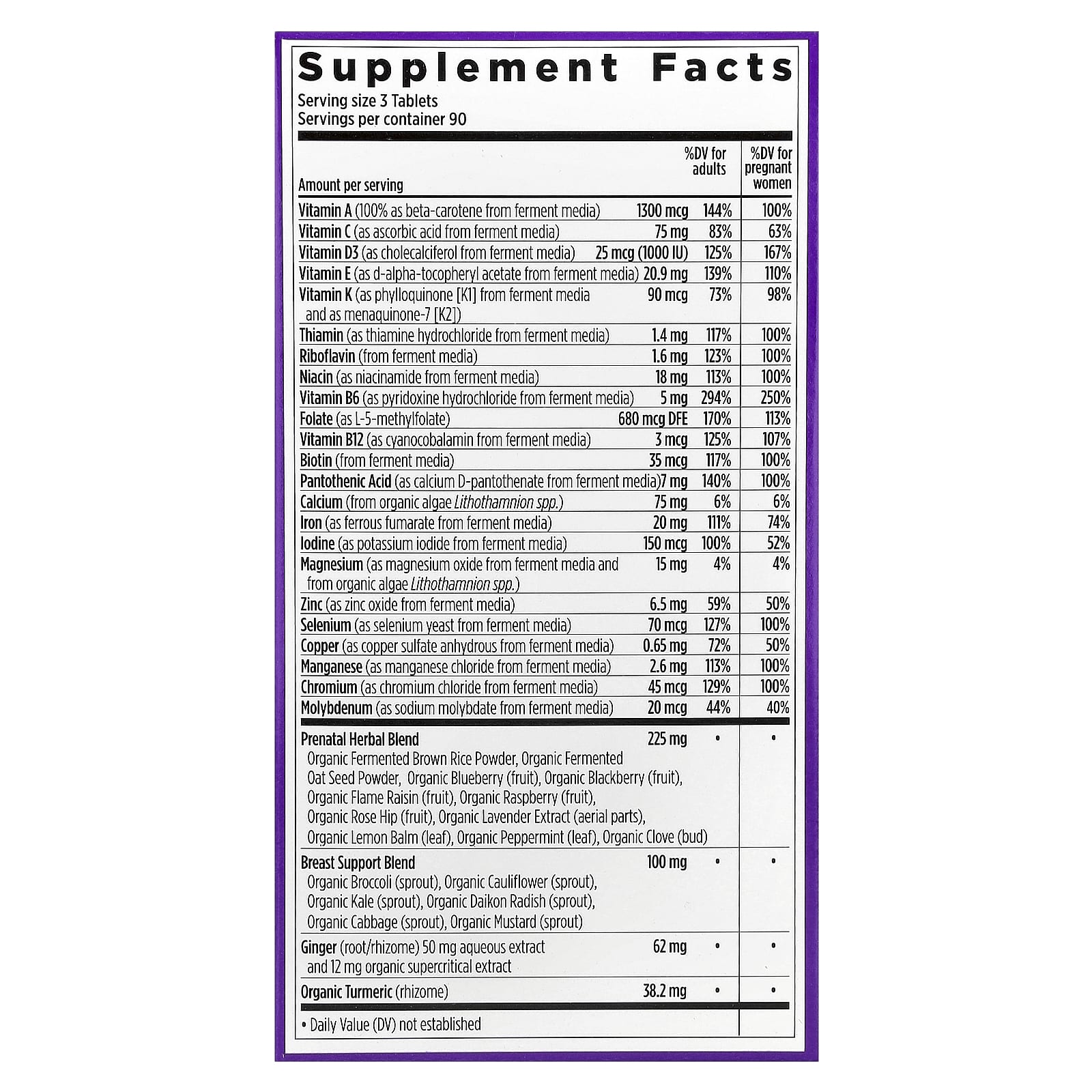 Содержит метилфолат - самую активную форму фолата - для здорового развития головного и спинного мозга, а также ферментированный витамин D3 для здорового развития костей и зубов.
