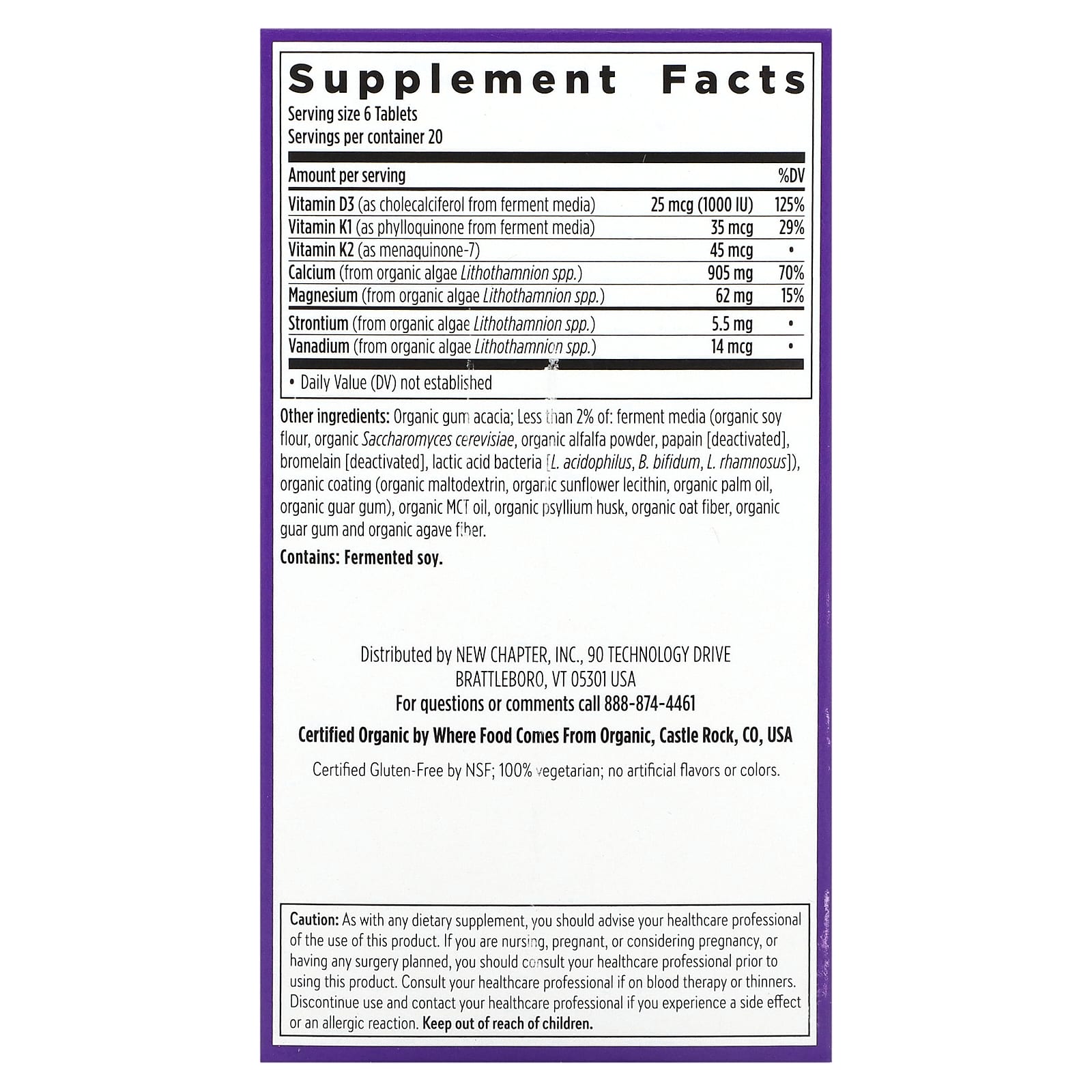 | Кальций (из органических водорослей Lithothamnion spp.) | 905 мг | 70% |
