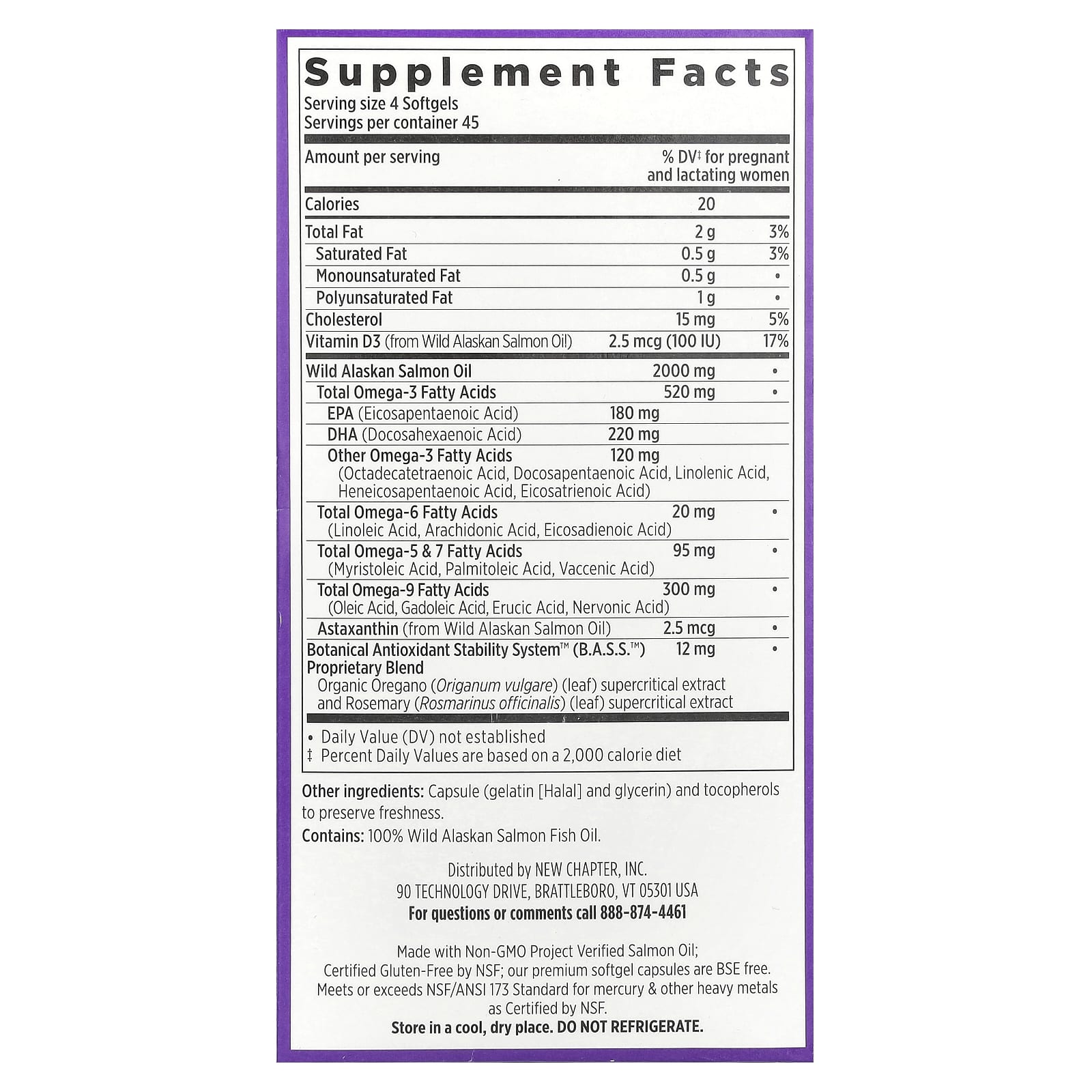 - Содержит жир лосося без ГМО, имеющий сертификат Non-GMO Project Verified