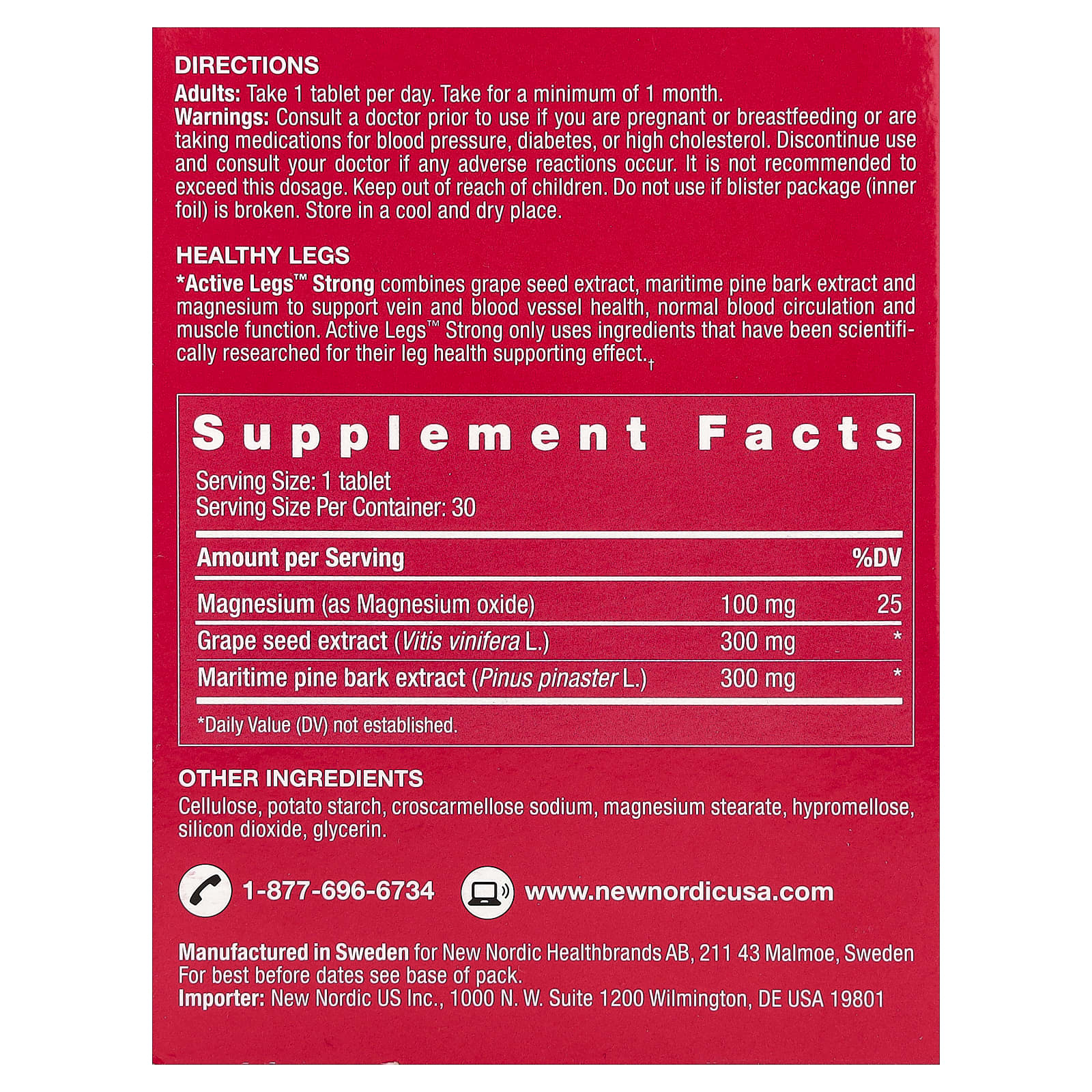 Active Legs ™ Strong сочетает в себе экстракт виноградных косточек, экстракт коры морской сосны и магний для поддержания здоровья вен и кровеносных сосудов, нормального кровообращения и работы мышц. Active Legs ™ «Strong» использует только те ингредиенты, которые были научно исследованы на предмет поддержки здоровья ног.