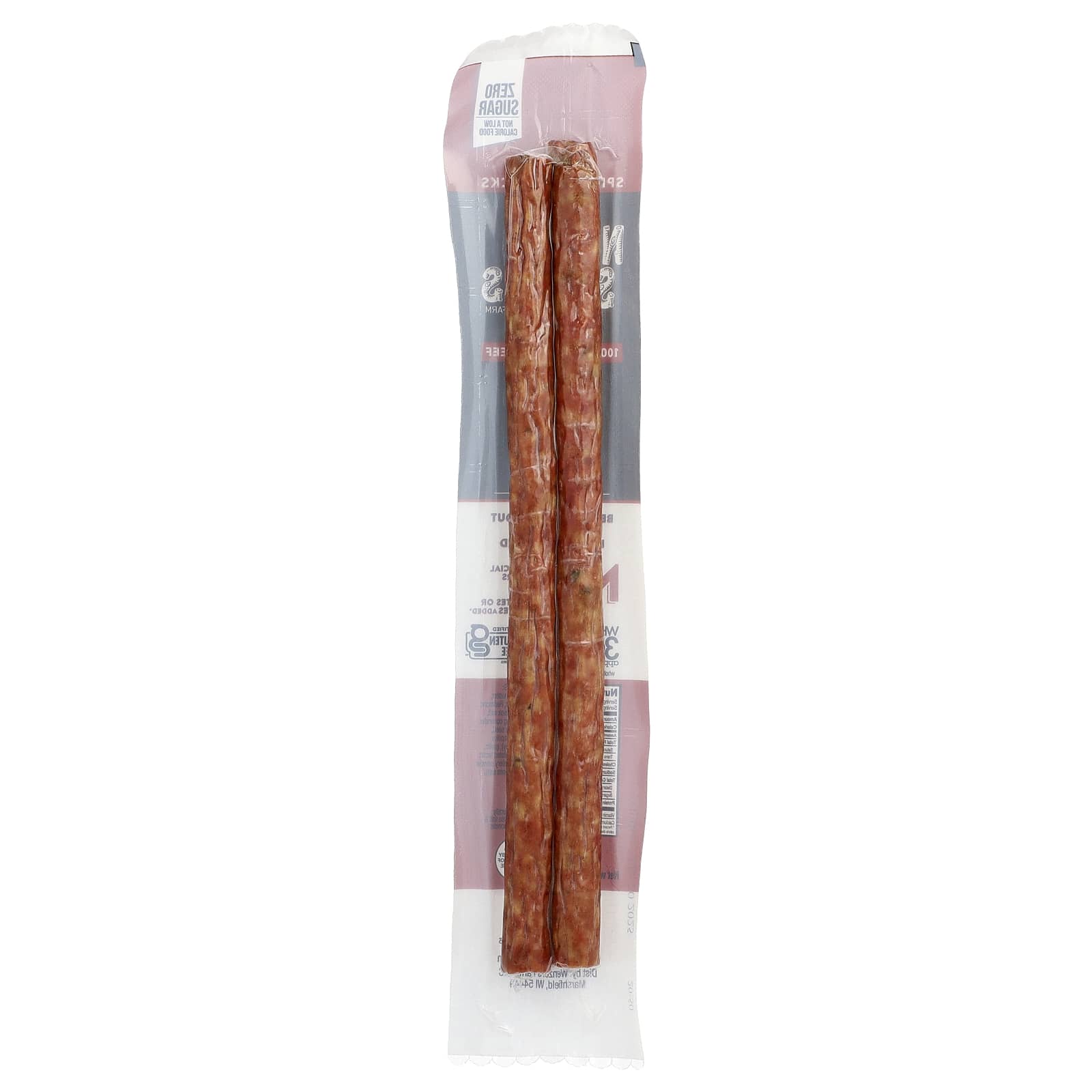 Говядина травяного откорма, вода, перец халапеньо, редмонд приправа (морская, специи, включая кориандр, горчица, семена сельдерея, черный перец, паприка, куркума, петрушка), чеснок, лук), инкапсулированная молочная кислота, порошок из культивированного сельдерея, морская соль).