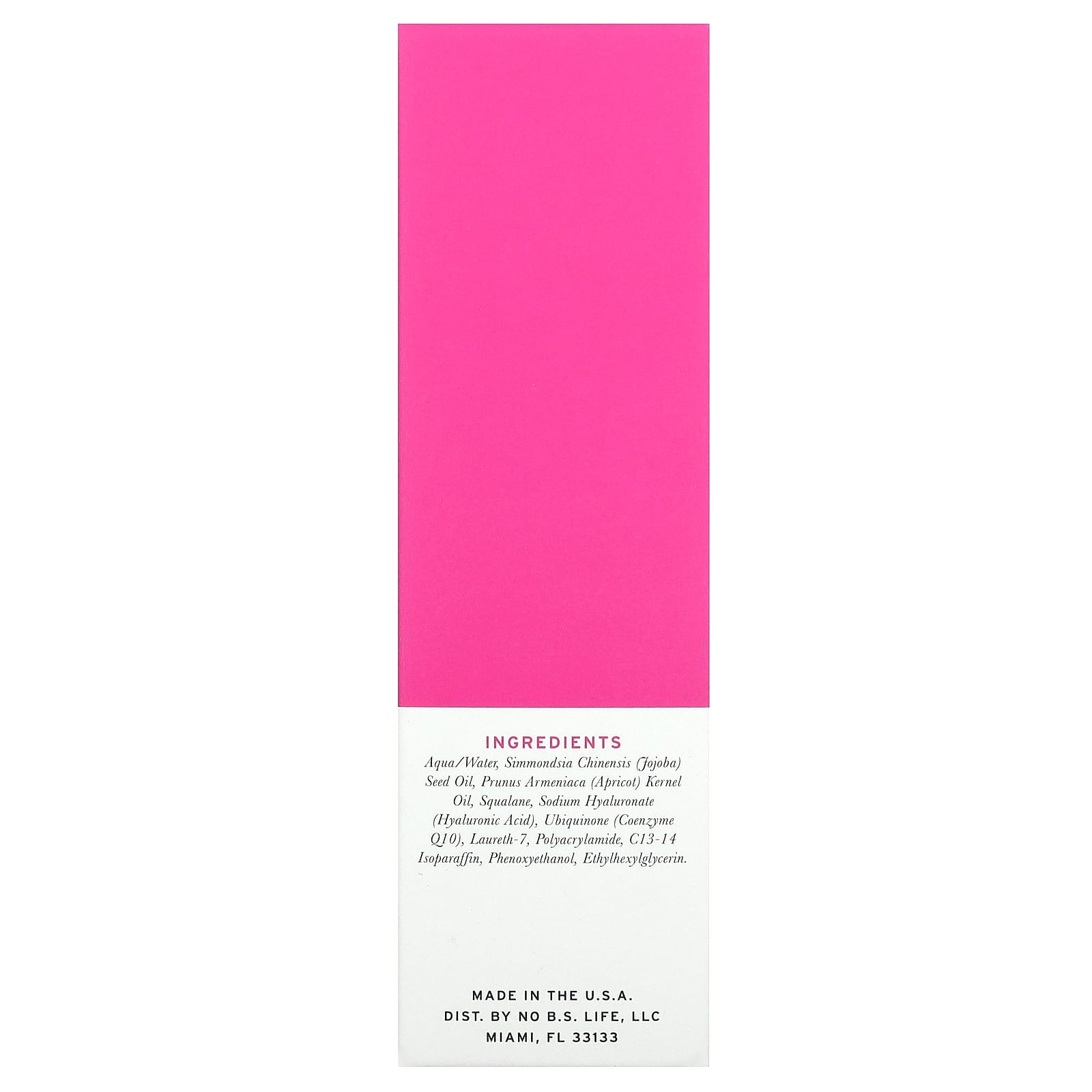 Вода, масло семян жожоба (Simmondsia chinensis), масло из косточек абрикоса (Prunus armeniaca), сквалан, гиалуронат натрия (гиалуроновая кислота), убихинон (коэнзим Q10), лаурет-7, полиакриламид, c13-14 изопарафин, феноксиэтанол, этилгексилглицерин.