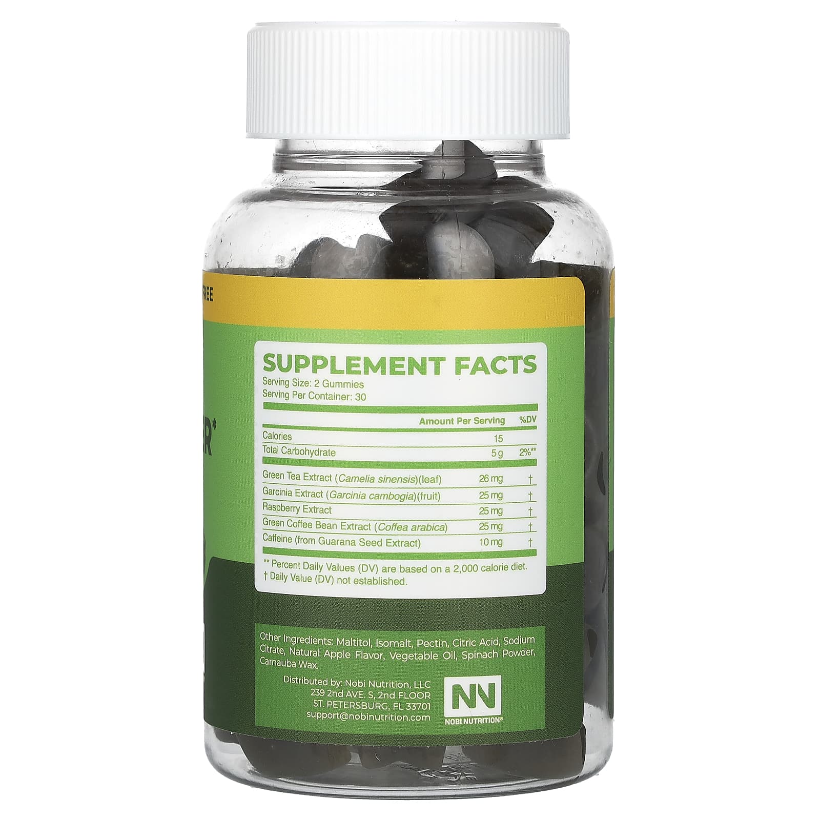 Мальтит, изомальт, пектин, лимонная кислота, цитрат натрия, натуральный ароматизатор «Яблоко», растительное масло, порошок из шпината, карнаубский воск.