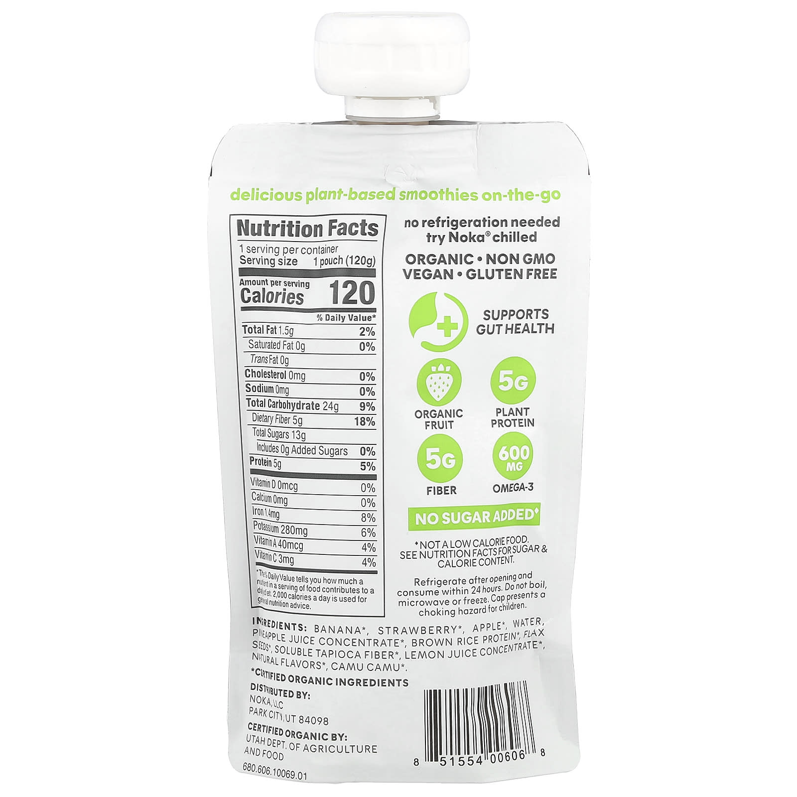 Noka, Superfood смузи с растительным белком, клубника, ананас, 120 г (4,22 унции)