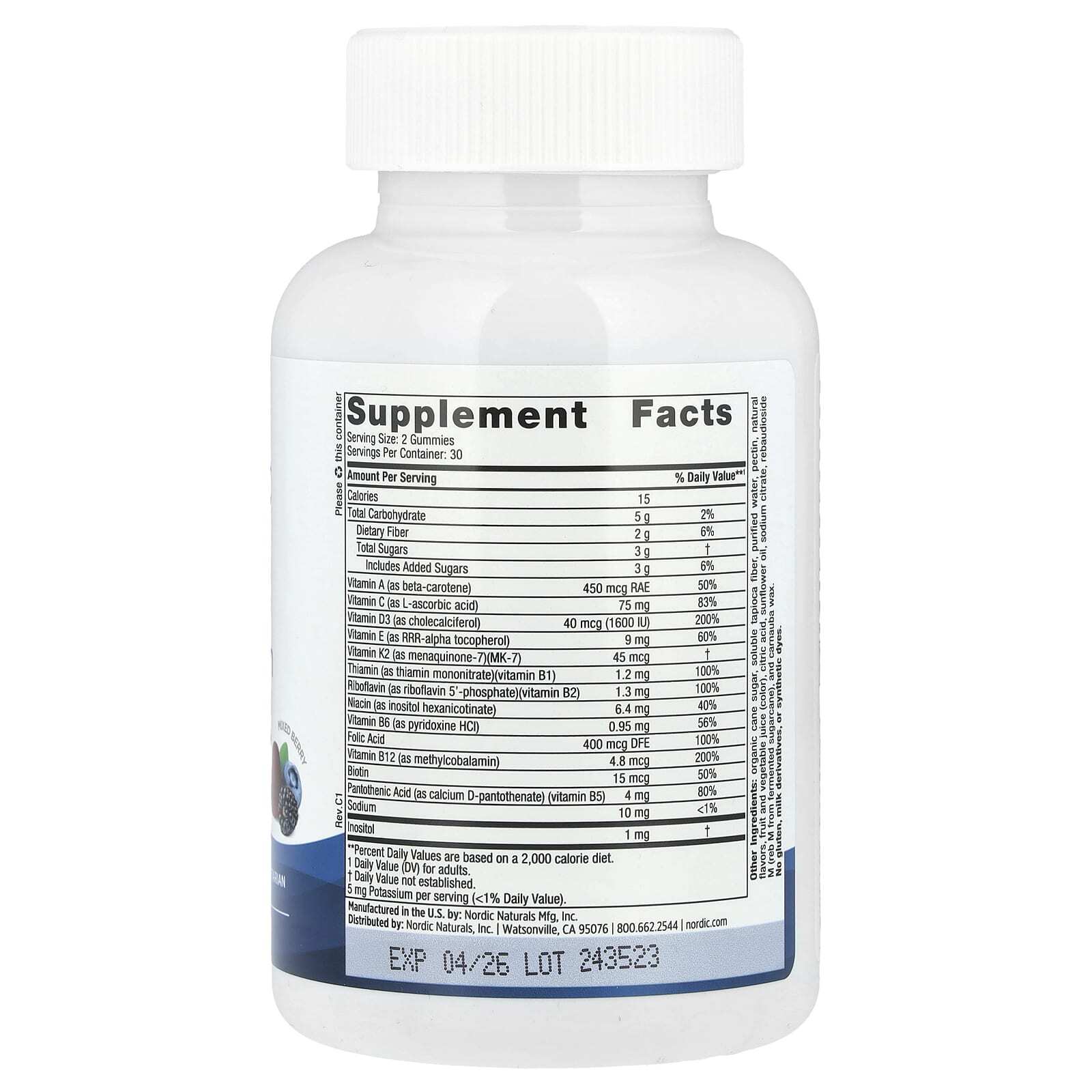 Органический тростниковый сахар, растворимая тапиоковая клетчатка, очищенная вода, пектин, натуральные ароматизаторы, фруктово-овощной сок (краситель), лимонная кислота, подсолнечное масло, цитрат натрия, ребаудиозид м (ребаудиозид м из ферментированного сахарного тростника), карнаубский воск.