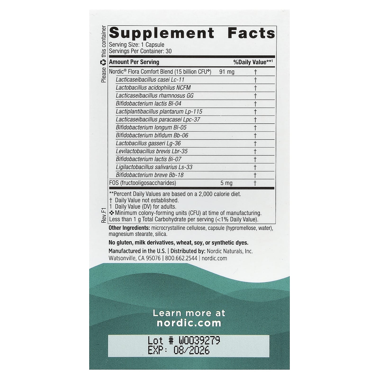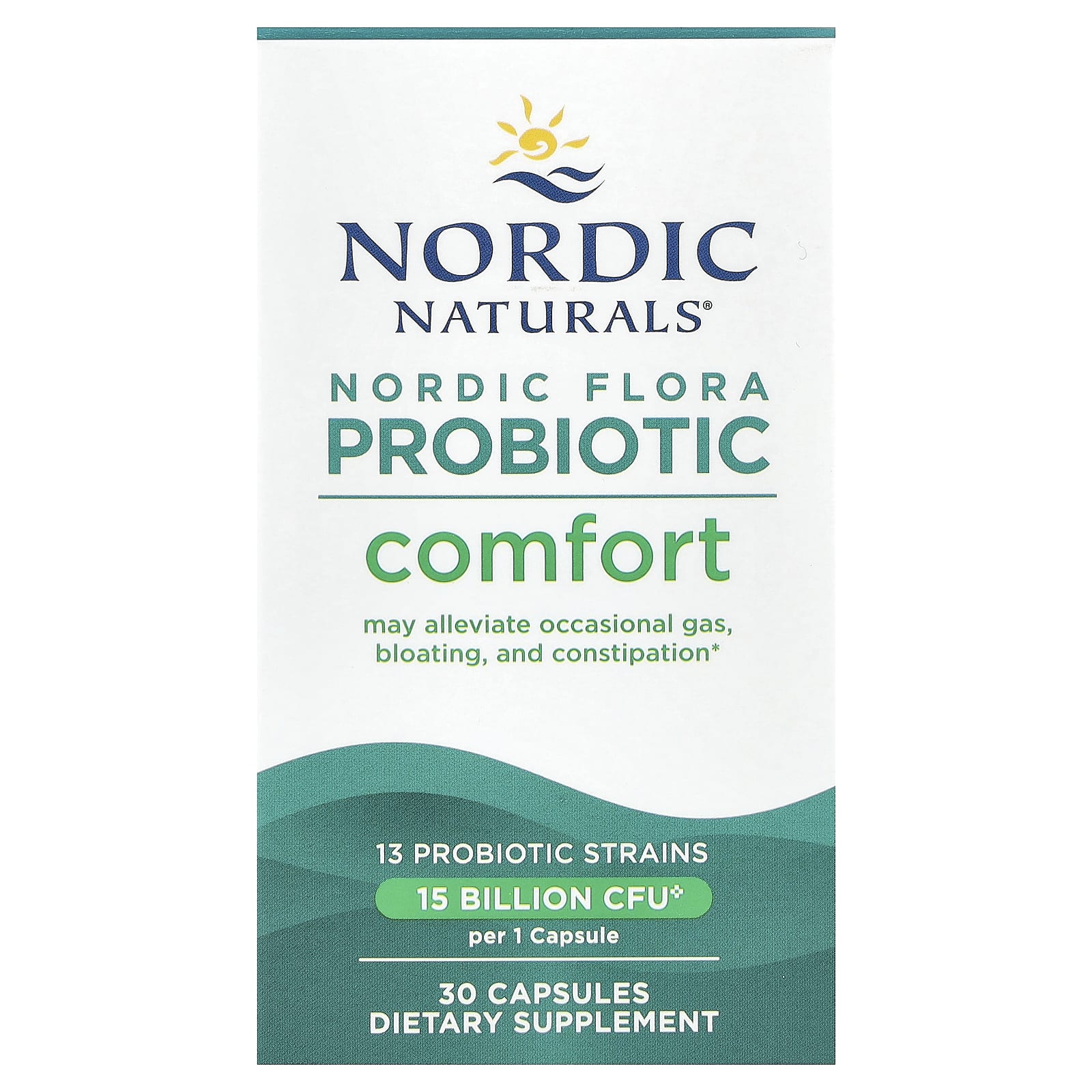 Пробиотик Nordic® Flora Probiotic Comfort — это смесь 13 штаммов пробиотиков с 15 млрд культур, способствующих здоровому пищеварению и помогающих поддерживать здоровый баланс микробиома. Эта уникальная смесь пробиотиков также поддерживает регулярность стула и может помочь облегчить эпизодическое газообразование, вздутие живота и запоры.