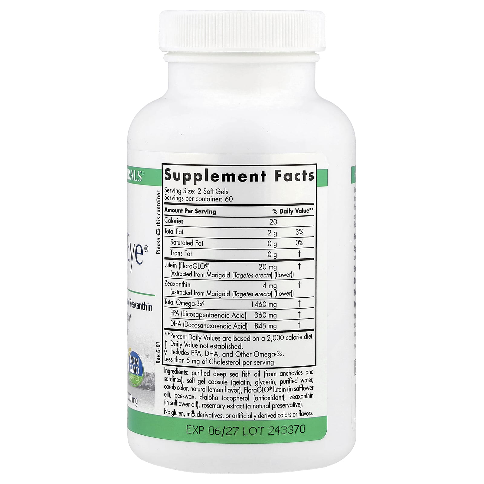 Очищенный жир глубоководных рыб (анчоусов и сардин), мягкая капсула (желатин, глицерин, очищенная вода, краситель рожкового дерева, натуральный ароматизатор «Лимон»), лютеин FloraGlo (в сафлоровом масле), пчелиный воск, d-альфа токоферол, зеаксантин (в кукурузном масле), экстракт розмарина (натуральный консервант).