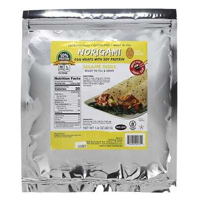 Обертки Norigami ™ в основном изготавливаются из яиц и с низким содержанием высококачественного соевого или горохового протеина без ГМО. Подходит для вегетарианцев и не содержит глютена, они предлагают полезный способ приготовления сэндвичей и закусок.