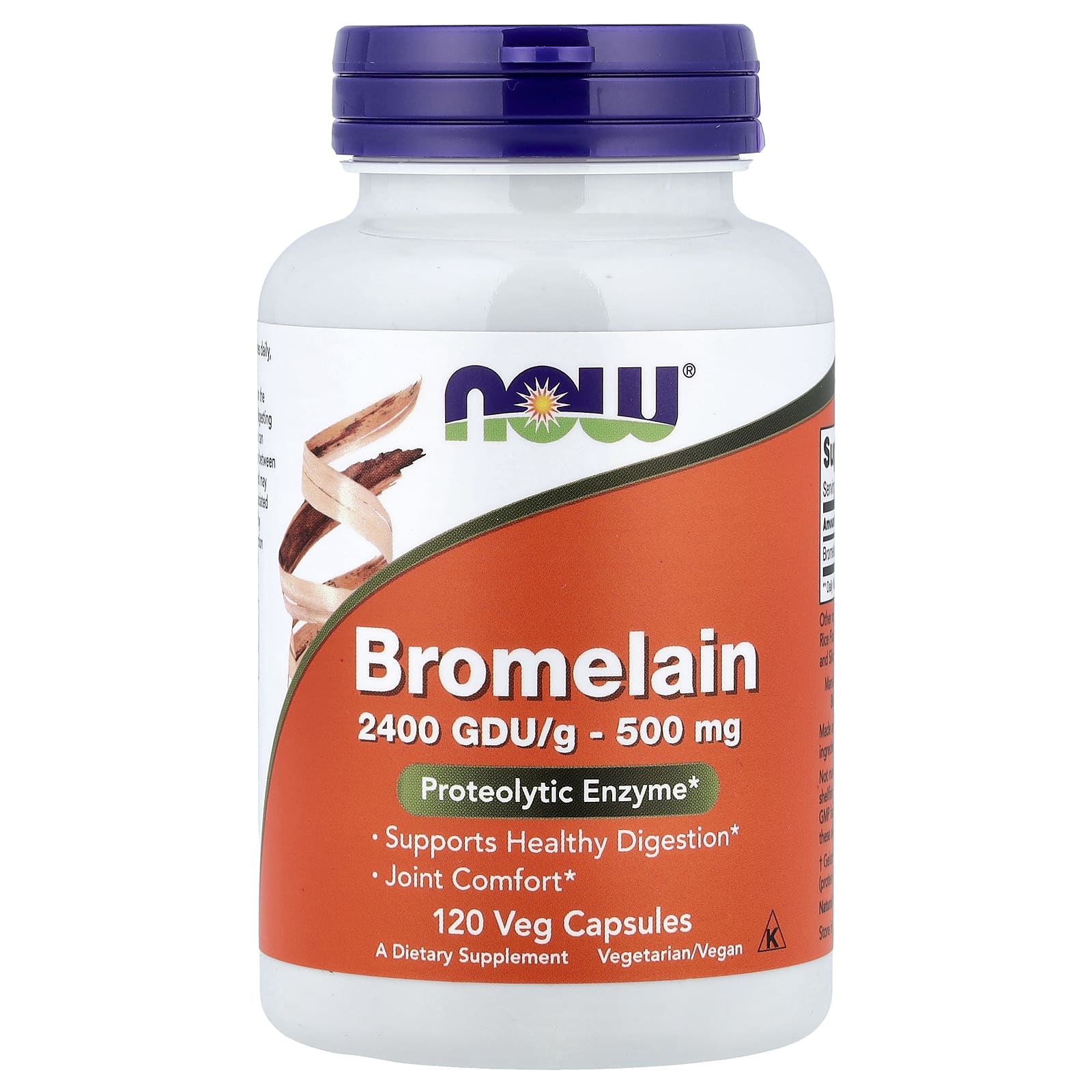 NOW Foods, бромелаин, 500 мг (2400 GDU/г), 120 растительных капсул
