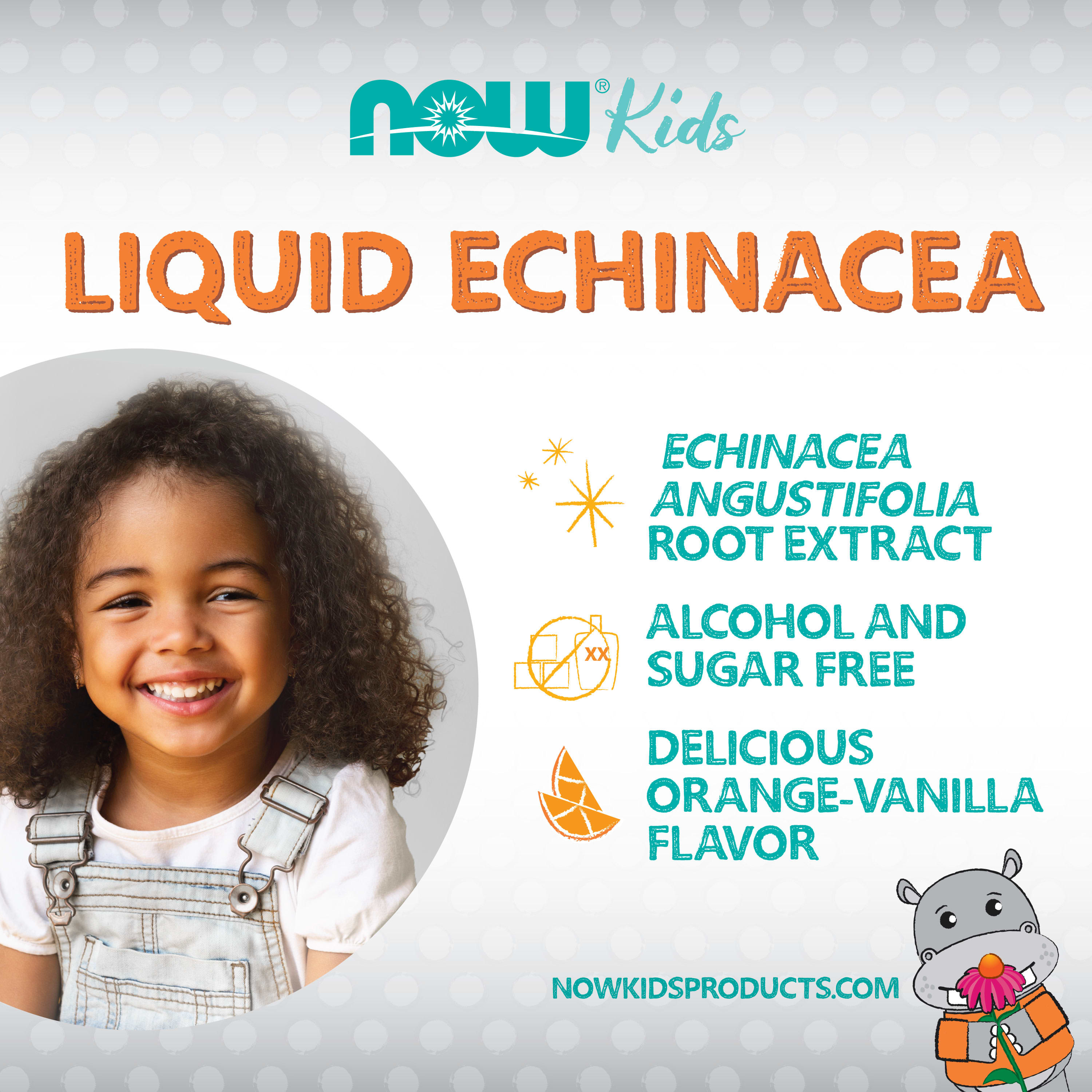 В состав жидкой добавки с эхинацеей для детей от NOW® входит экстракт корня эхинацеи, содержащий полный спектр активных соединений, включая эхинакозид природного происхождения.Это травяная добавка без спирта с восхитительным апельсиново-ванильным вкусом, подслащенная архатом, которая понравится детям!