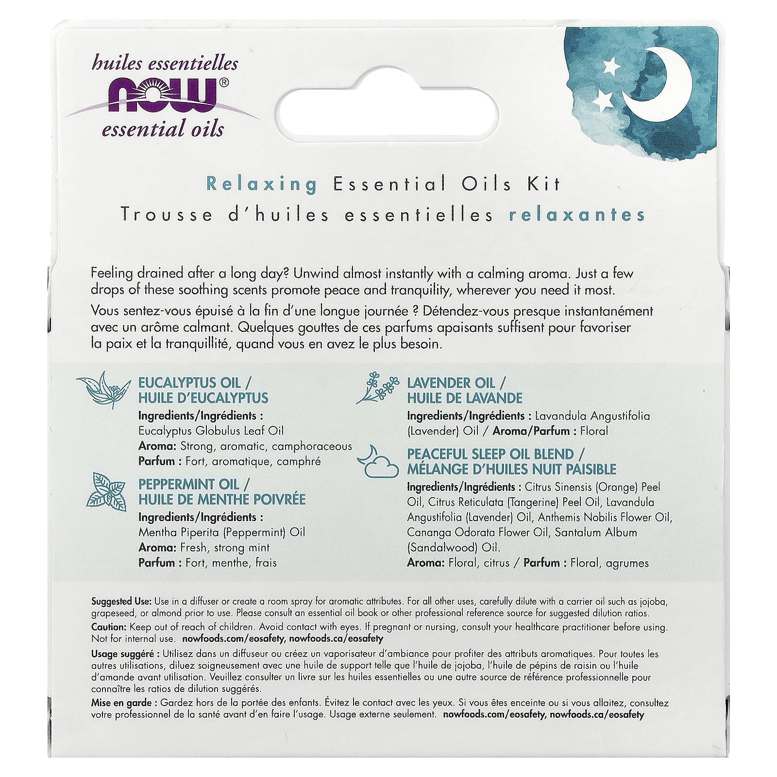 Смесь масел для спокойного сна: масло из цедры апельсина (Citrus sinensis), масло из цедры мандарина (Citrus reticulata), лавандовое масло (Lavandula angustifolia), масло цветков ромашки английской (Anthemis nobilis), масло из цветков иланг-иланга (Cananga odorata), масло сандалового дерева (Santalum album).