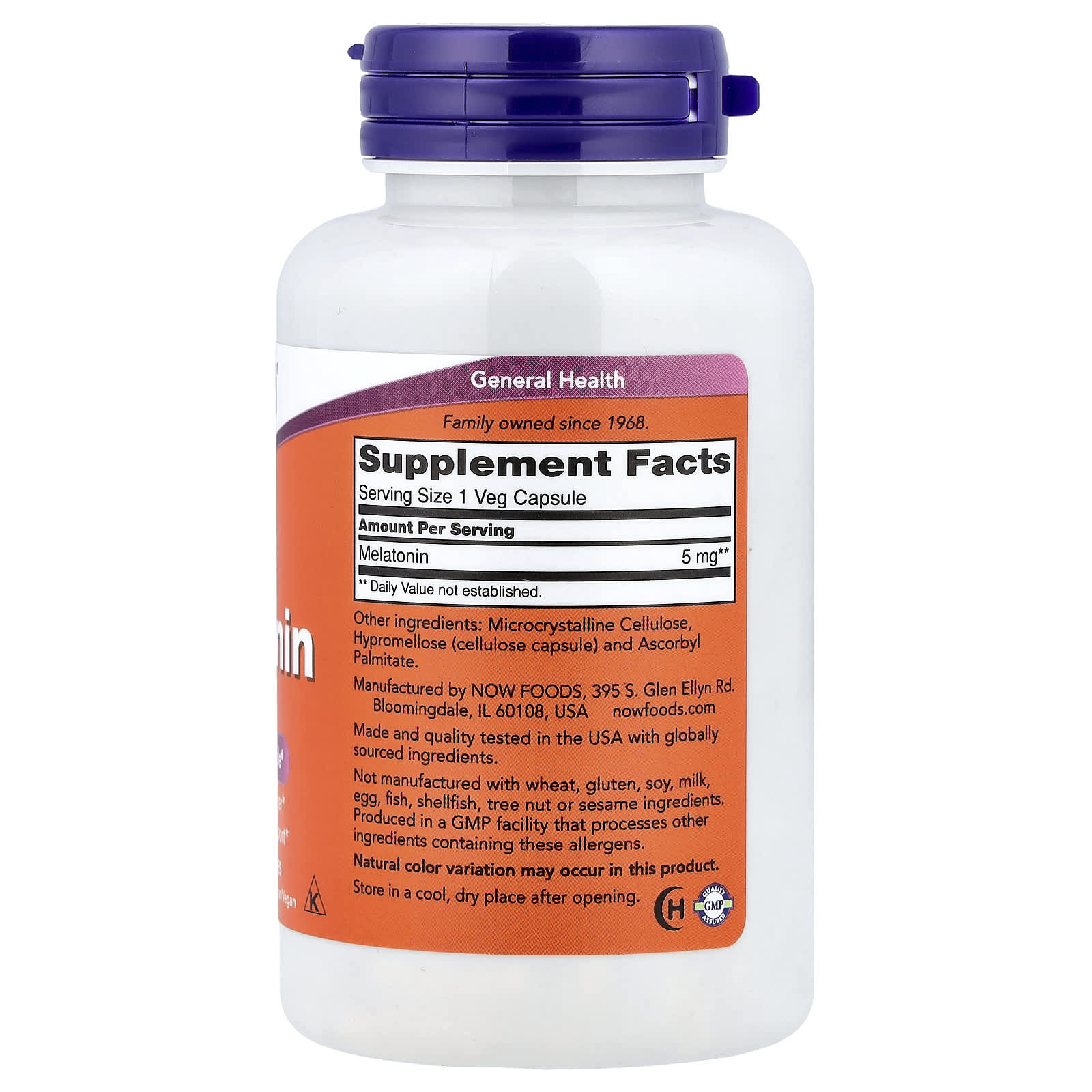 NOW Foods, мелатонин, 5 мг, 180 растительных капсул