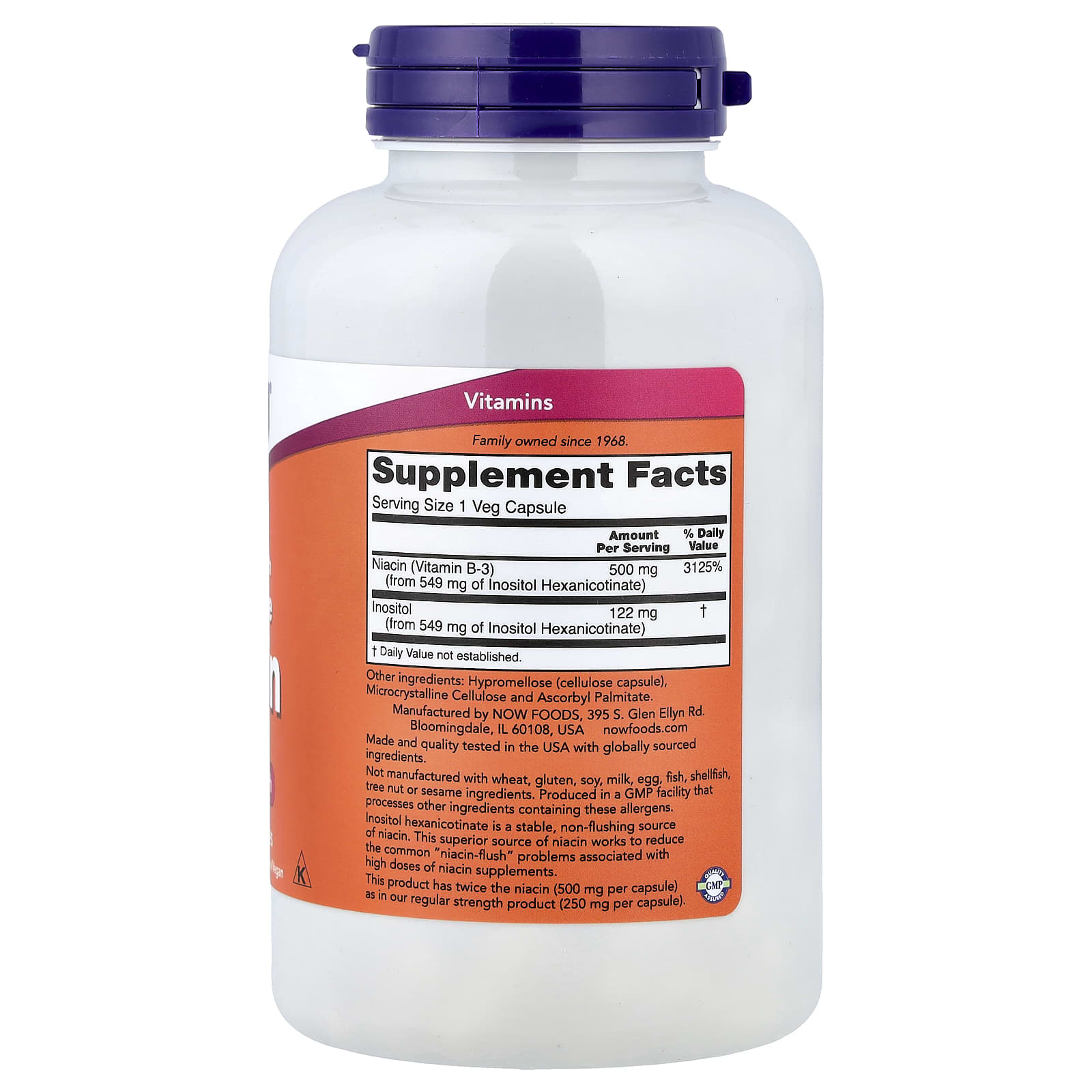 NOW Foods, ниацин без приливов, 500 мг, 180 растительных капсул