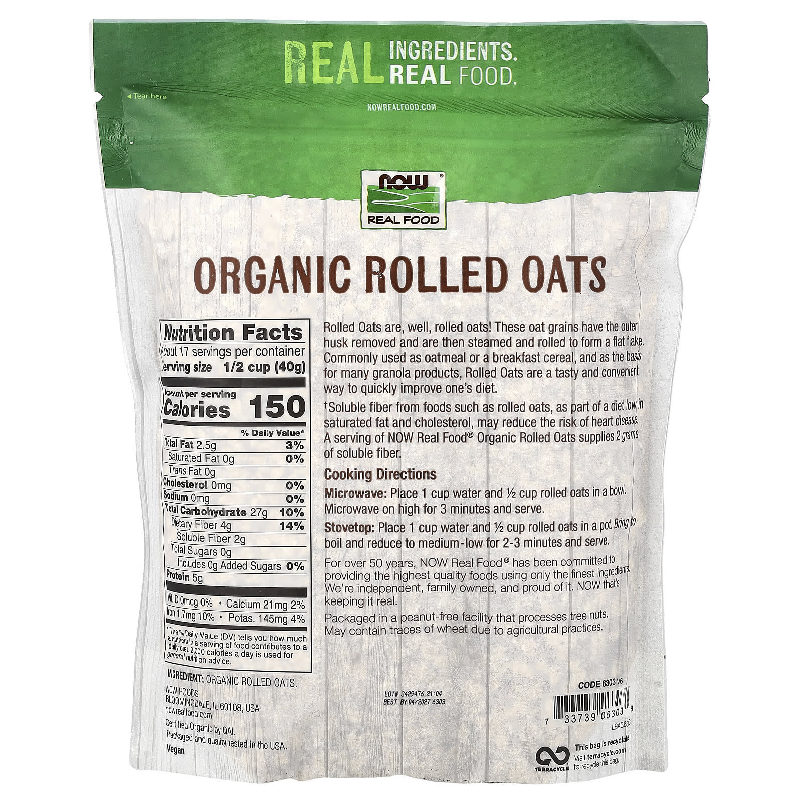 † Растворимая клетчатка из таких продуктов, как плющеная овсянка, в составе диеты с низким содержанием насыщенных жиров и холестерина может снизить риск возникновения сердечных заболеваний.Порция органических овсяных хлопьев от NOW Real Food® содержит 2 грамма растворимой клетчатки.