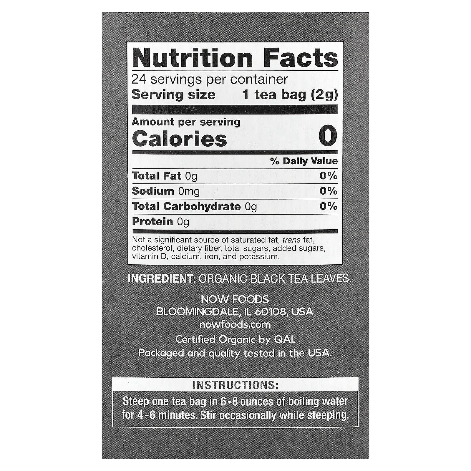 NOW Foods, Органический черный чай, 24 чайных пакетика, 48 г (1,7 унции)