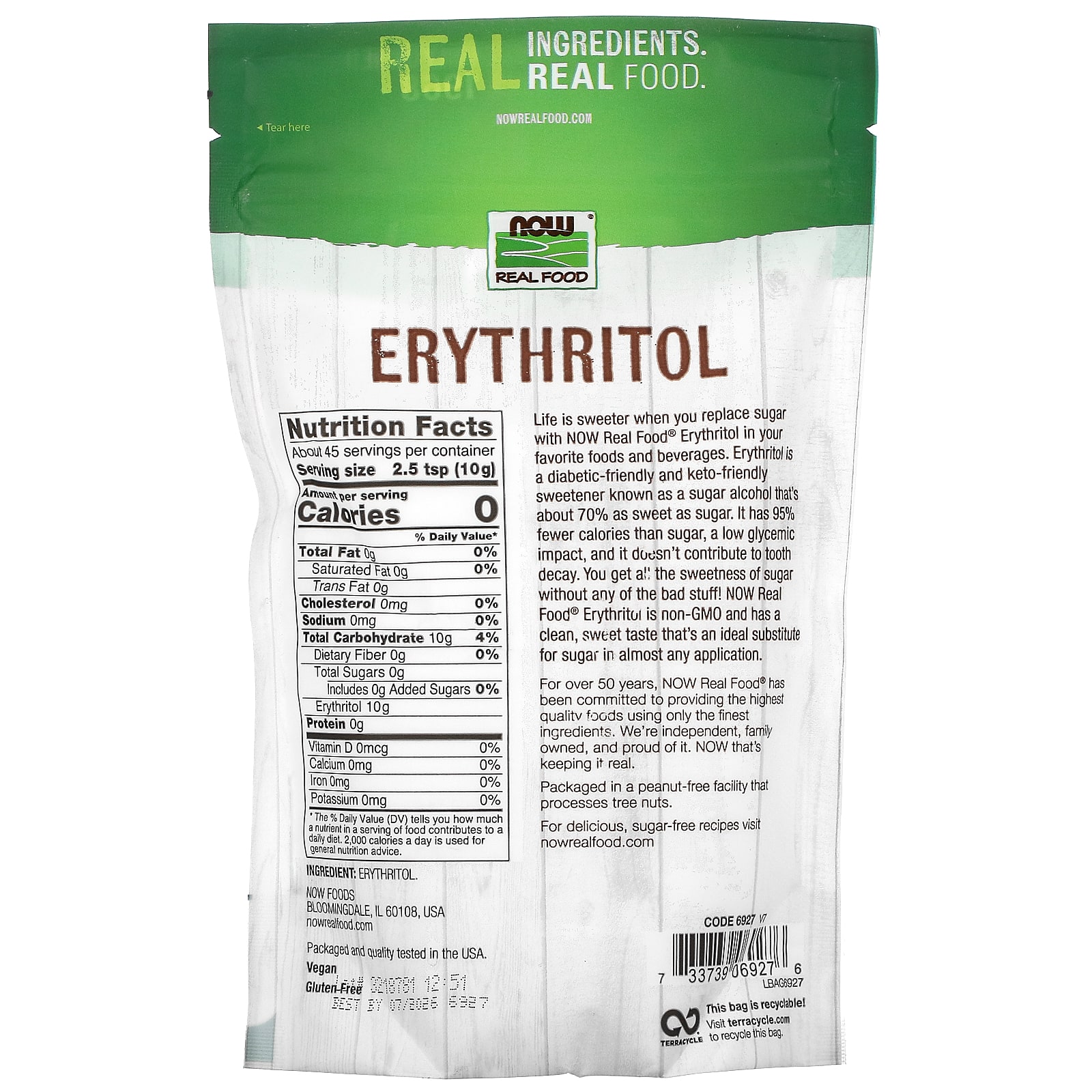Жизнь станет слаще, если вы замените сахар эритритолом от NOW Real Food® в своих любимых продуктах и напитках. Эритритол — безопасный для диабетиков и людей, соблюдающих кетодиету, подсластитель, известный как сахарный спирт, который соответствует примерно 70% сладости рафинированного сахара. В нем на 95% меньше калорий, чем в сахаре. Он имеет низкий гликемический индекс и не способствует возникновению кариеса. Вы получаете всю сладость сахара без какого-либо вреда! Эритритол от NOW Real Food® не содержит ГМО и обладает чистым сладким вкусом. Он является идеальным заменителем сахара практически в любой ситуации.