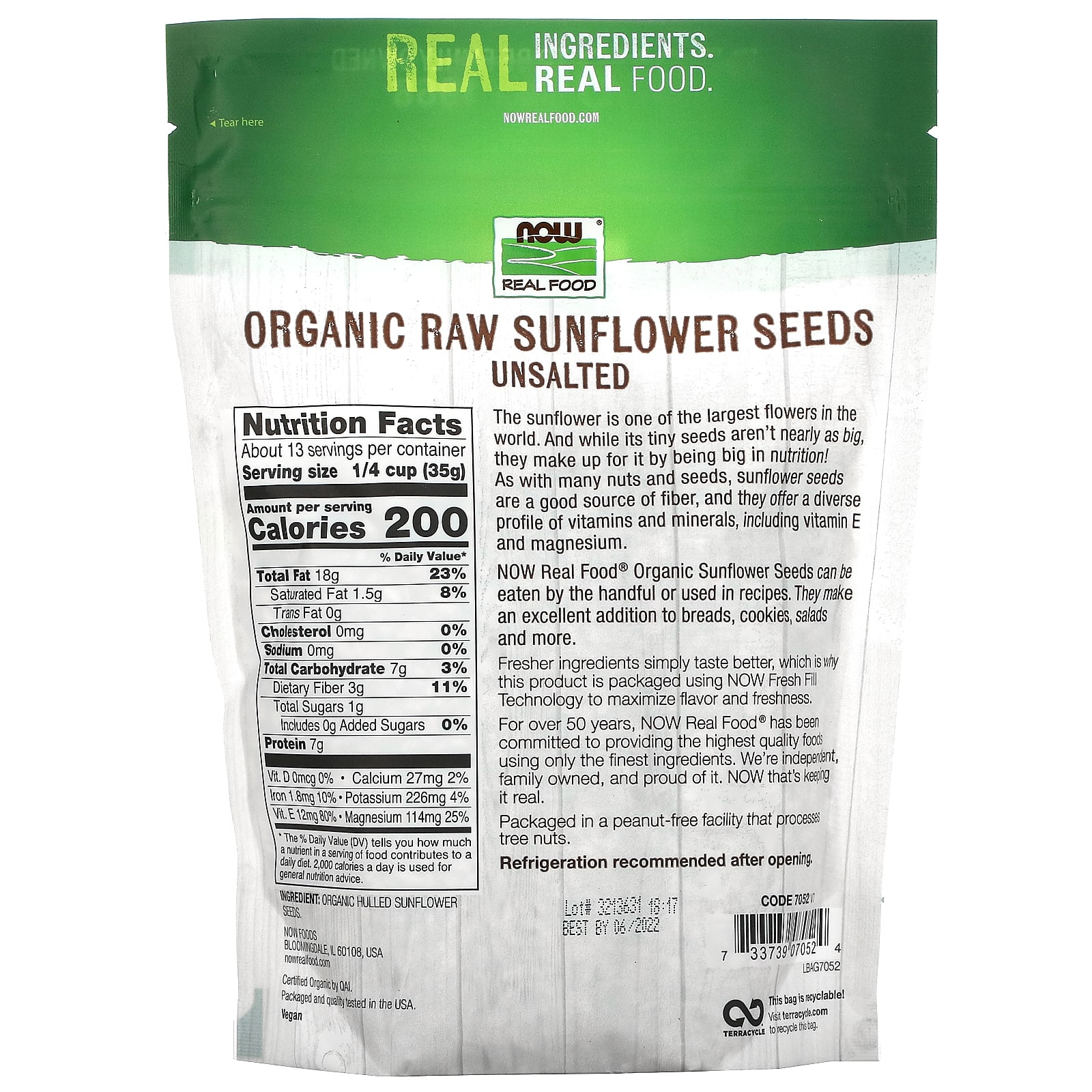 NOW Foods, Real Food, органические необработанные семена подсолнечника, несоленые, 454 г (16 унций)