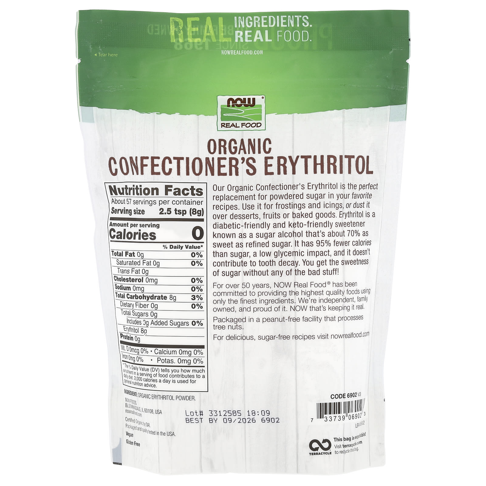 Наш органический кондитерский эритритол - идеальная замена сахарной пудре в ваших любимых рецептах. Используйте его для глазури и глазури, а также для посыпания десертов, фруктов или выпечки. Эритритол — это безопасный для диабетиков и людей, соблюдающих кето-диету, подсластитель, известный как сахарный спирт, который обладает примерно 70% сладости рафинированного сахара. В нем на 95% меньше калорий, чем в сахаре. Он имеет низкий гликемический индекс и не способствует возникновению кариеса. Вы получаете сладость сахара без каких-либо вредных веществ!