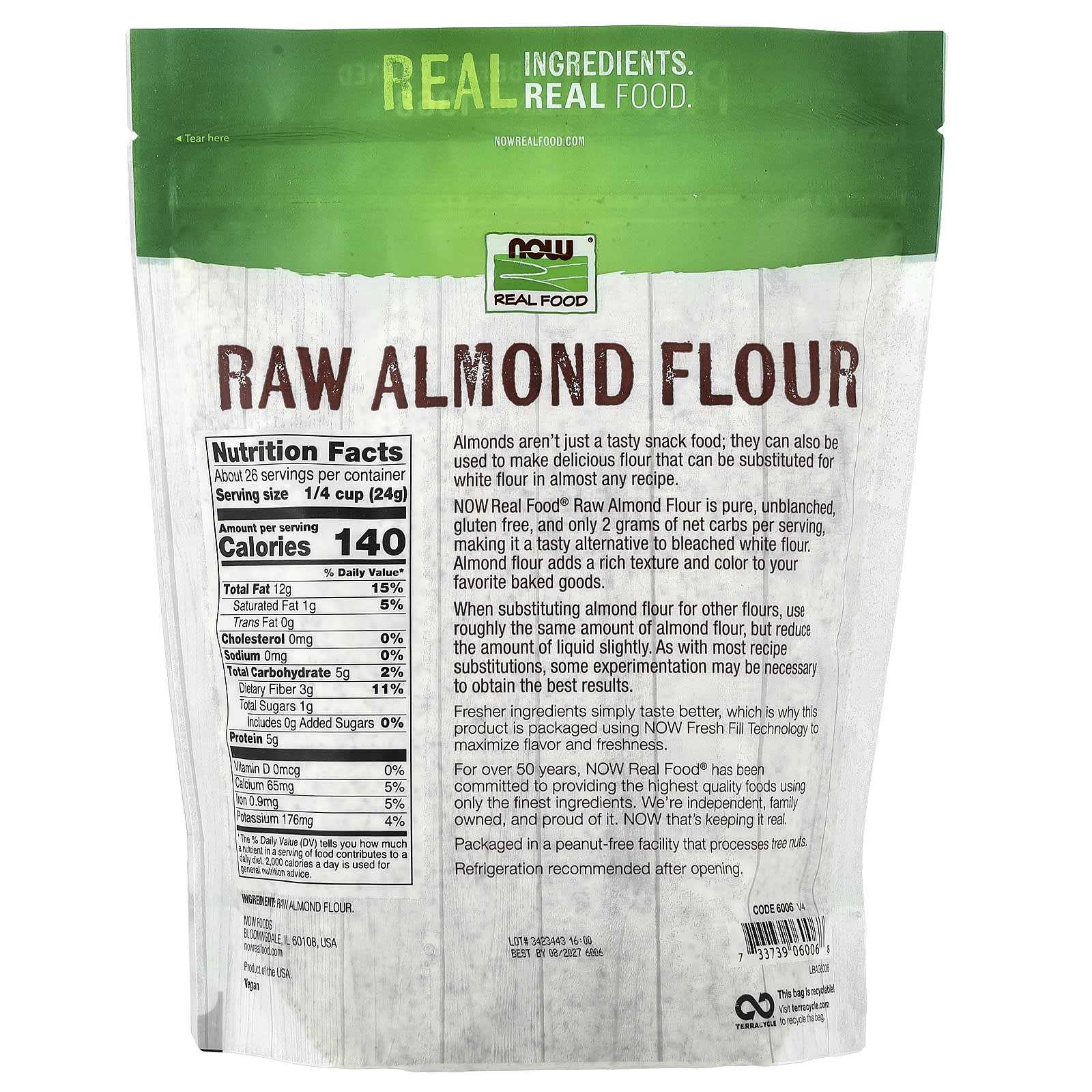 Мука из необработанного миндаля NOW Real Food® - это чистая, небланшированная, без глютена и всего 2 грамма чистых углеводов в каждой порции, что делает ее вкусной альтернативой отбеленной белой муке.Миндальная мука придаст насыщенную текстуру и цвет вашей любимой выпечке.