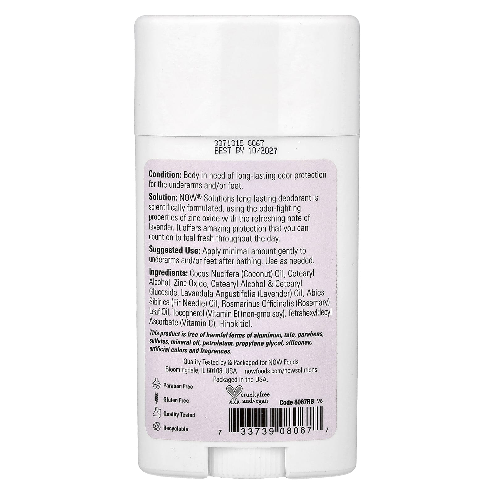 Решение. Дезодорант длительного действия от NOW® Solutions разработан на основе научных исследований. Он содержит оксид цинка для борьбы с запахом и освежающую нотку лаванды.Он обеспечивает удивительную защиту, которой вы можете доверять для ощущения свежести в течение дня.