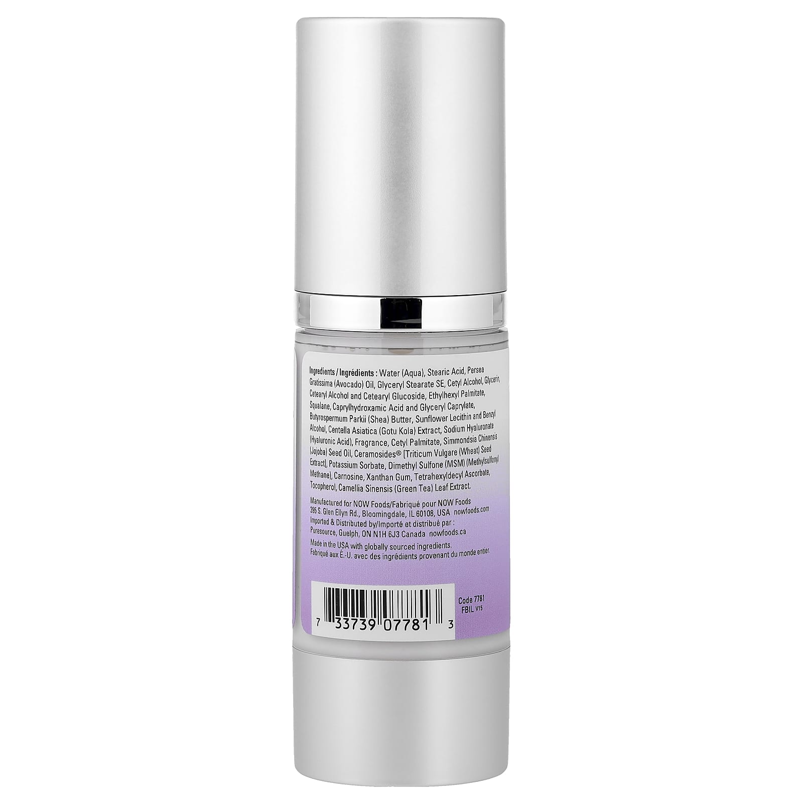 Вода, стеариновая кислота, масло авокадо (Persea gratissima), глицерил стеарат эмульгирующий, цетиловый спирт, глицерин, цетеариловый спирт и цетеариловый глюкозид, этилгексил пальмитат, сквалан, каприлгидроксаминовая кислота и глицерил каприлат, масло ши (Butyrospermum parkii), подсолнечный лецитин и бензиловый спирт, экстракт готу колы (Centella asiatica), гиалуронат натрия (гиалуроновая кислота), отдушка, цетил пальмитат, масло из семян жожоба (Simmondsia chinensis), Ceramosides® [экстракт семян пшеницы (Triticum vulgare)], сорбат калия, диметилсульфон (МСМ) (метилсульфонилметан), карнозина, ксантановая камедь, тетрагексилдецил аскорбат, токоферол, экстракт листьев зеленого чая (Camellia sinensis).
