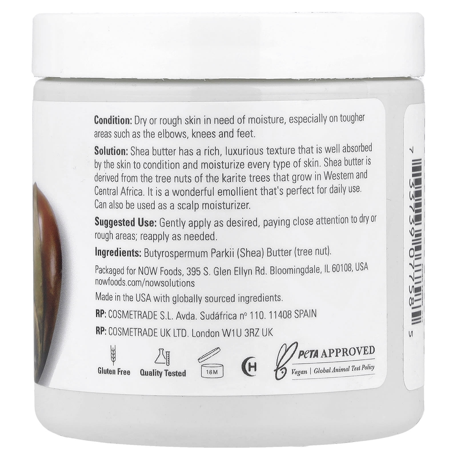 Этот продукт имеет твердую текстуру в естественном состоянии. Цвет и текстура могут меняться в зависимости от температуры.Продукт тает при нагревании выше температуры тела и снова становится твердым, когда остывает.Это естественное явление, которое может повлиять на внешний вид продукта, но не влияет на качество продукта.При нагревании и охлаждении могут возникать кристаллы жира, которые влияют на цвет и текстуру продукта, делая его зернистым или неровным.Если масло ши твердое, его можно смягчить, поместив в кастрюлю с горячей водой (например, 100º или более теплой) на 30 минут или нагревать в микроволновой печи, пока не смягчится.