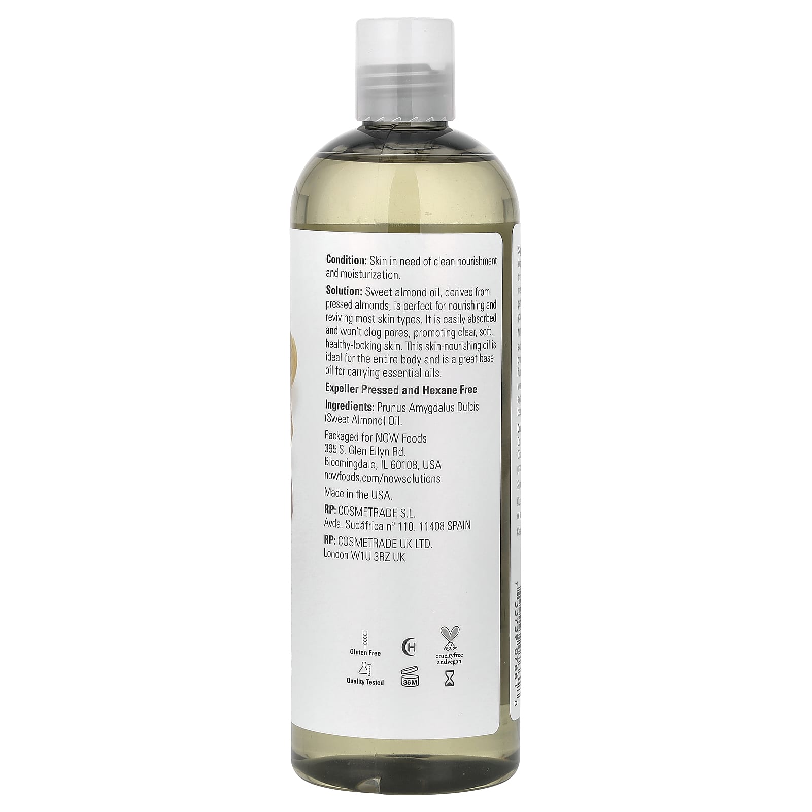 NOW Foods, Solutions, масло сладкого миндаля, чистое увлажняющее масло, без запаха, 473 мл (16 жидк. унций)