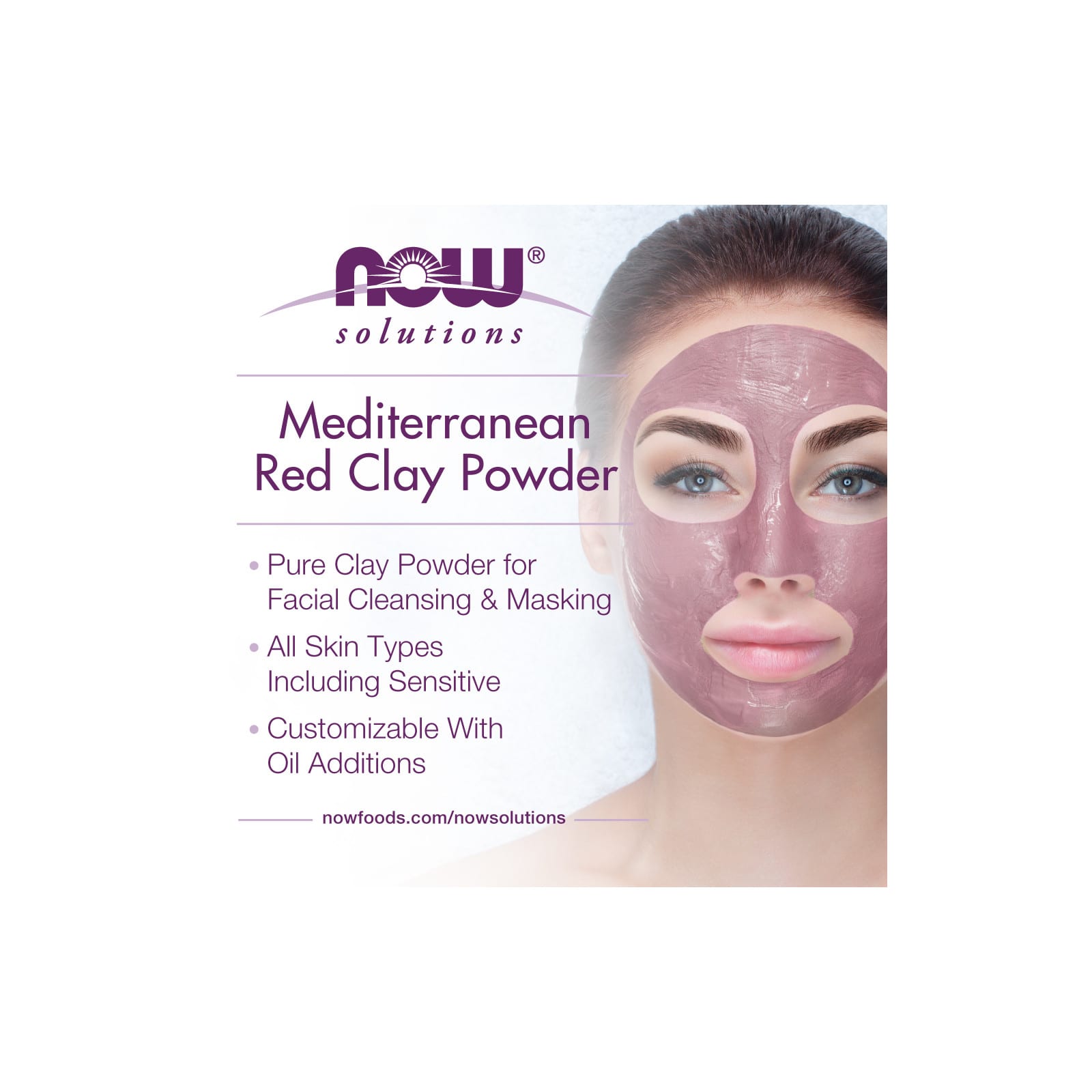 Смешайте одну столовую ложку порошка красной глины NOW® Solutions с одной столовой ложкой воды. Нанесите на всю кожу лица и шеи, избегая чувствительных зон и кожи вокруг глаз. Оставьте на 10–20 минут, смойте и нанесите увлажняющий крем.