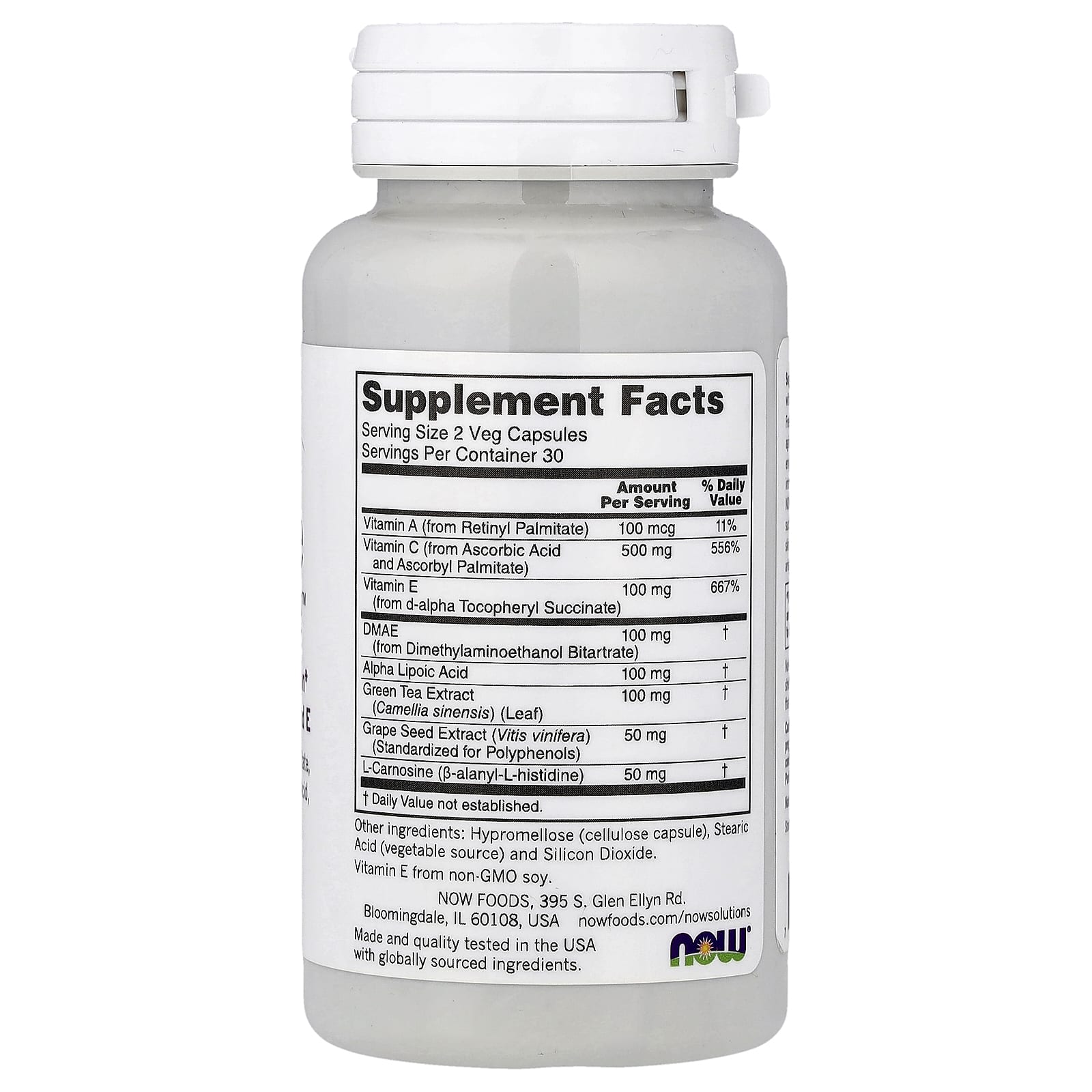 - В состав также входят ДМАЭ, аскорбил пальмитат, L-карнозин, альфа-липоевая кислота, экстракт виноградных косточек