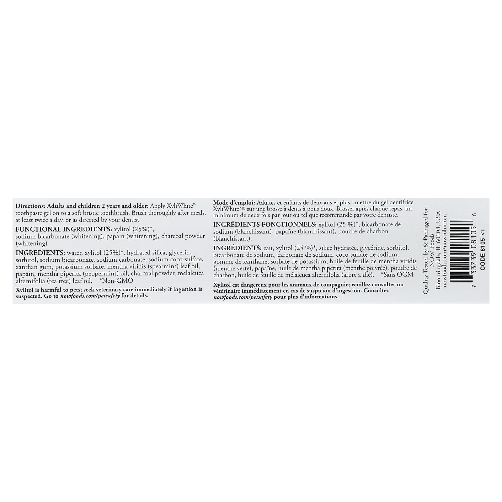 Вода, ксилитол (25%)*, гидратированный диоксид кремния, глицерин, сорбит, бикарбонат натрия, карбонат натрия, кокосульфат натрия, Ксантановая камедь, сорбат калия, масло листьев мяты колосистой (Mentha viridis), папаин, масло перечной мяты (Mentha piperita), порошок из древесного угля, масло из листьев чайного дерева (Melaleuca alternifolia).