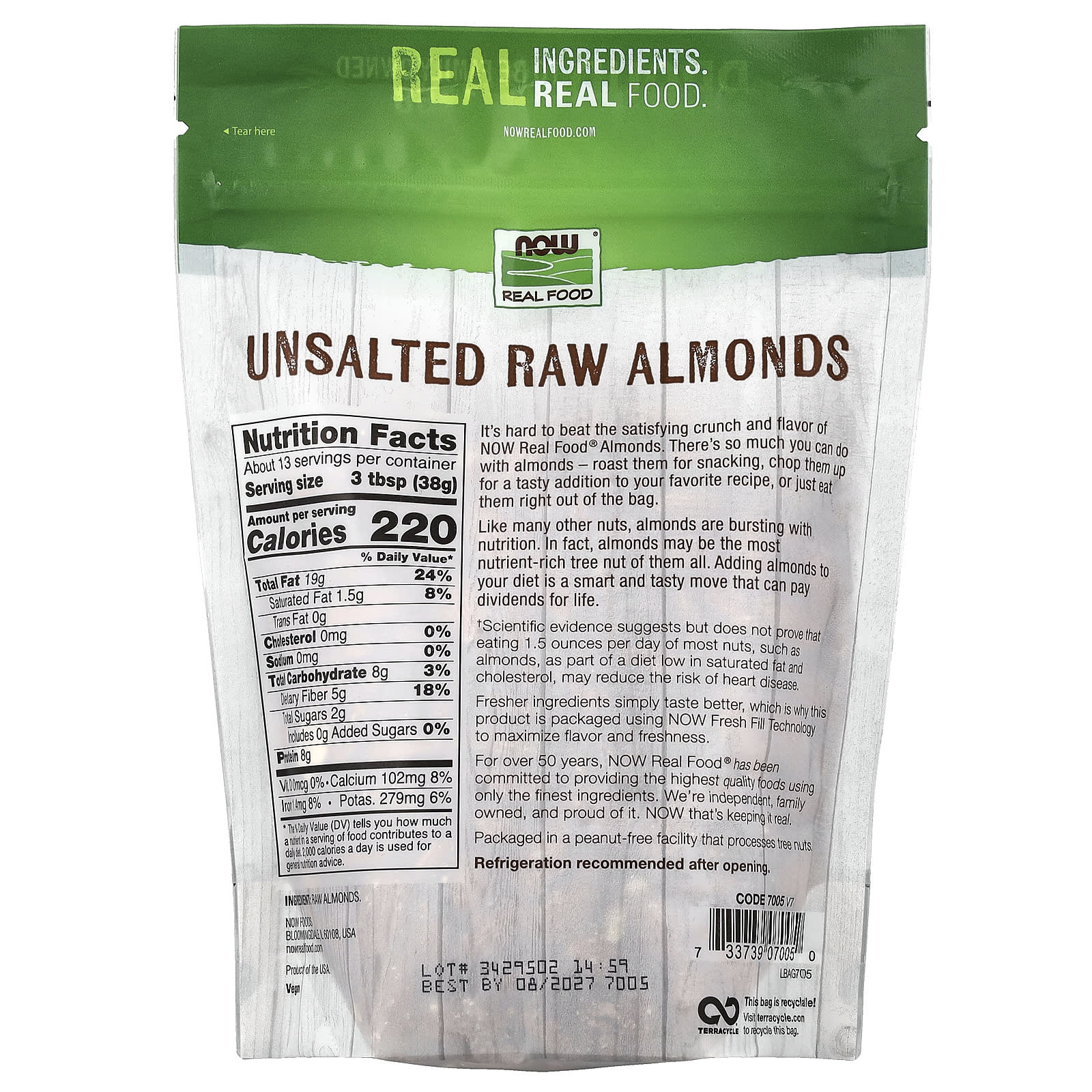 Очень хрустящий и вкусный миндаль от NOW Real Food® от NOW Real Food® отличается отменным вкусом.С миндалем можно так много использовать: поджарить его для снека, нарезанного для вкусного добавления в ваш любимый рецепт или просто есть прямо из упаковки.