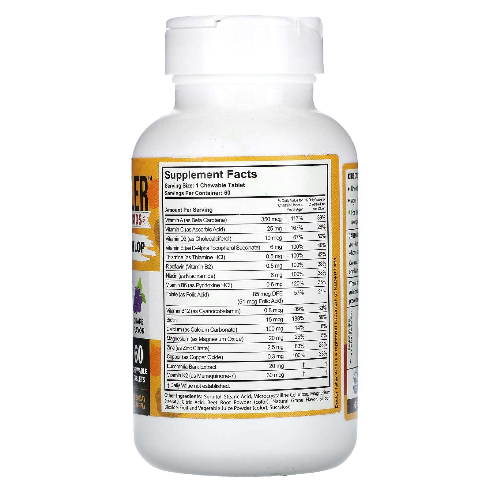 Многие дети сталкиваются с дефицитом питательных веществ из-за несовершенного рациона, мальабсорбции, пищевых аллергий или привередливости в еде, что влияет на их рост и развитие. Doctor Taller Kids — это веселое и вкусное решение проблемы, которое включает жевательные таблетки со вкусом винограда, богатые натуральными мультивитаминами и минералами. Эти вкусные таблетки поддерживают рост костей на начальном этапе, укрепляют иммунную систему и улучшают общее самочувствие, делая питание легким и приятным для детей.
