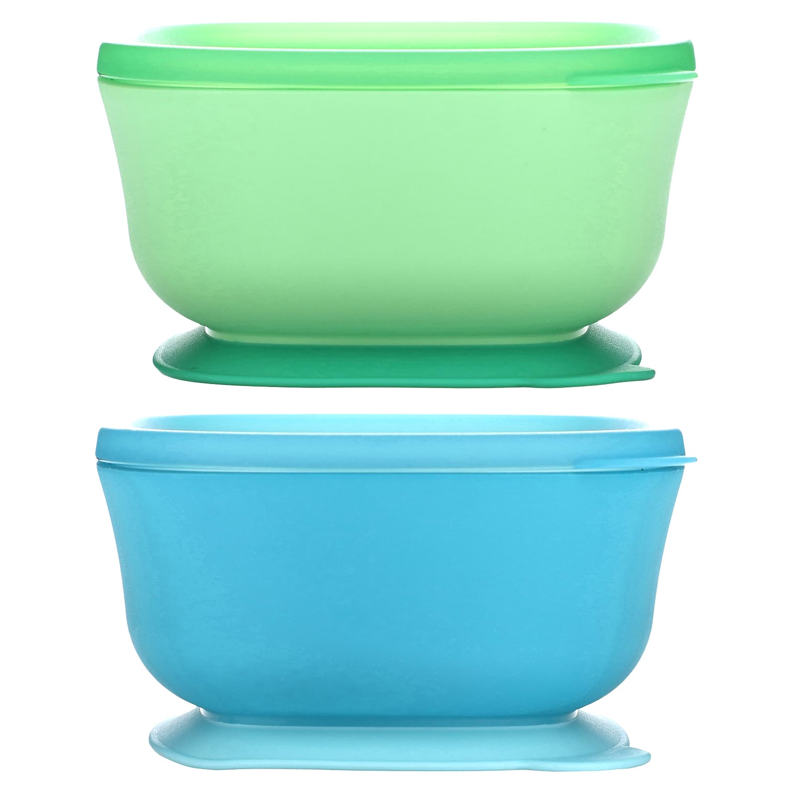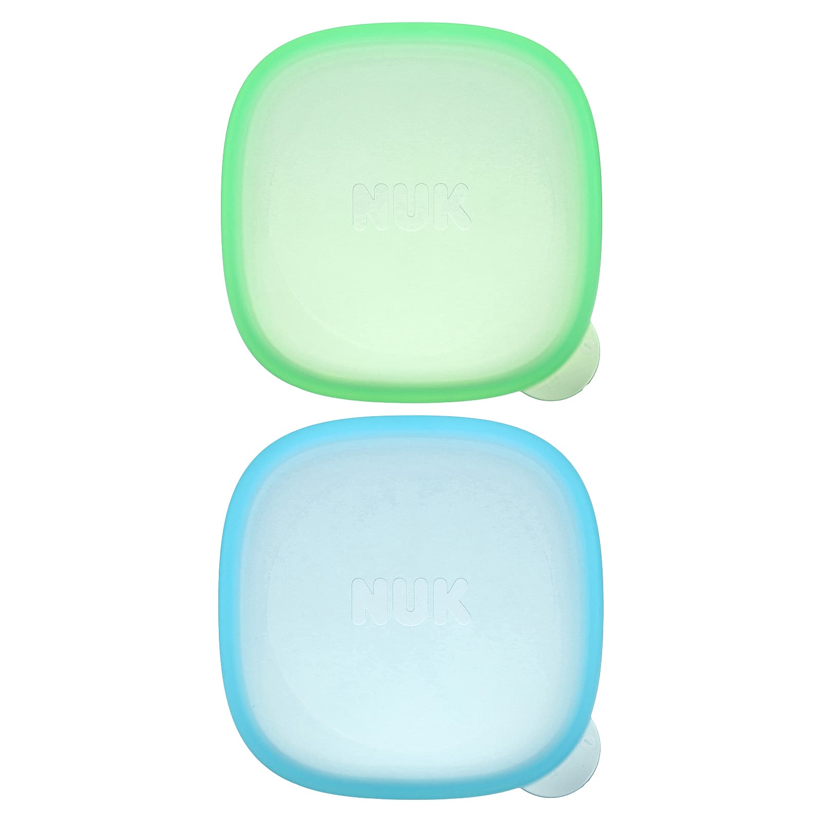 NUK, Миски с присосками, для детей от 6 месяцев, синие и зеленые, 2 чаши + 2 крышки