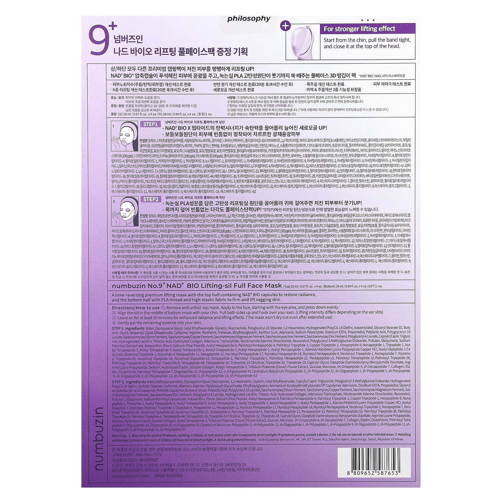 Премиальная лифтинговая маска, обращающая время, верхняя половина которой содержит капсулы NAD + BIO для восстановления сияния, а нижняя половина с нитью из PLA и высокоэластичной тканью укрепляет и подтягивает дряблую кожу.