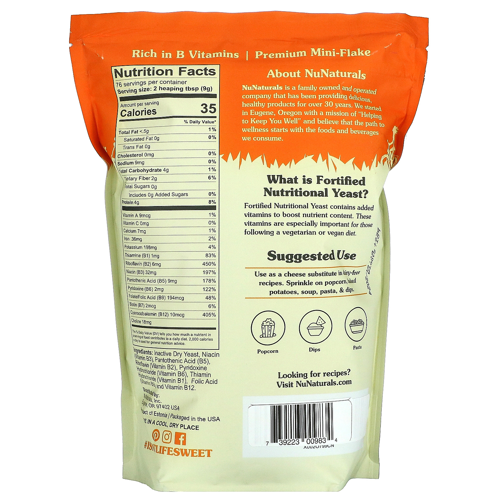 Используйте в качестве заменителя сыра в блюдах без молочных продуктов. Посыпьте попкорн, печеный картофель, суп, пасту и т. Д. & соусы.