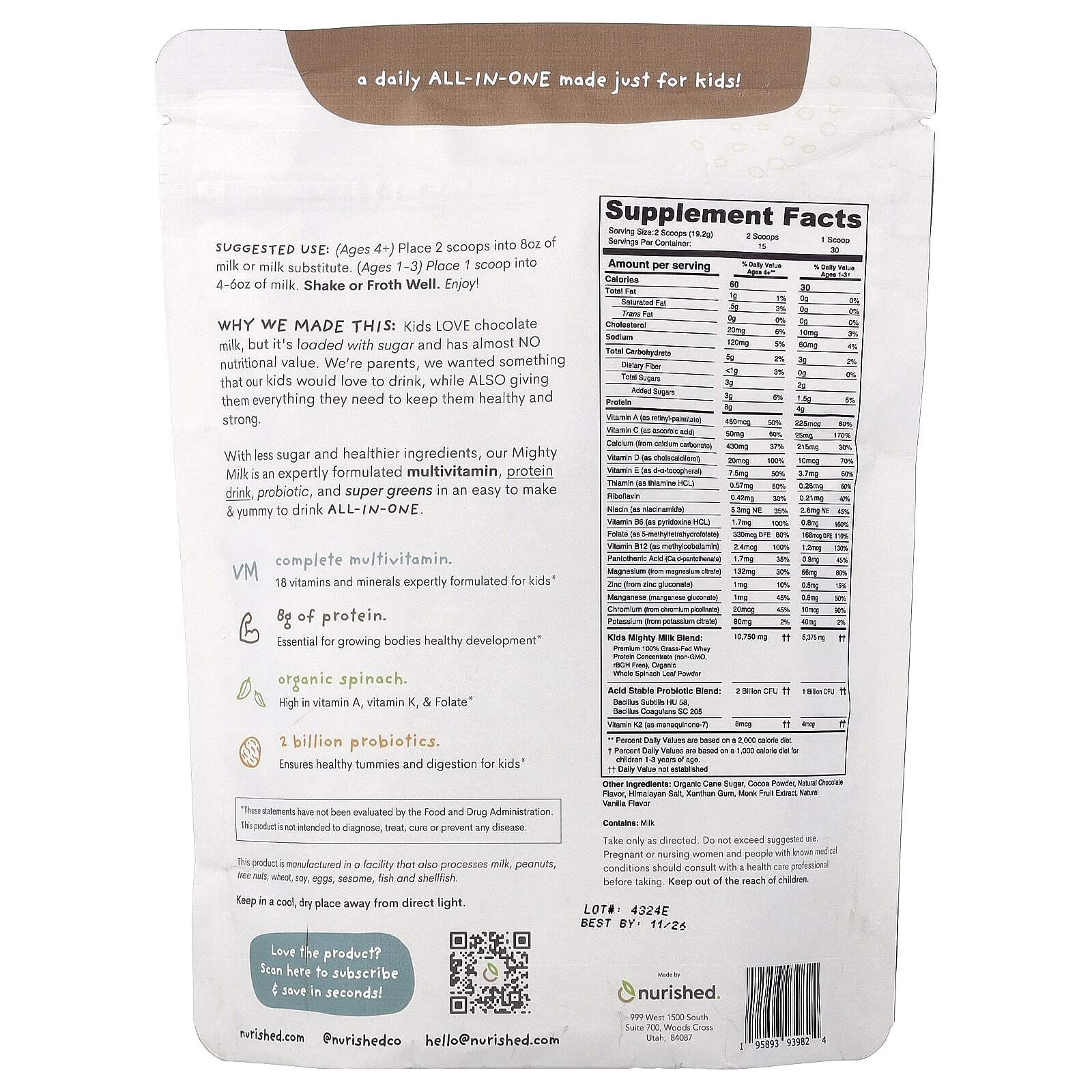 Смесь Mighty Milk для детей: Концентрат сывороточного протеина премиального качества от коров травяного откорма (без ГМО и бычьего гормона роста), органический порошок из листьев шпината | 10 750 мг | †† | 5375 мг | †† |