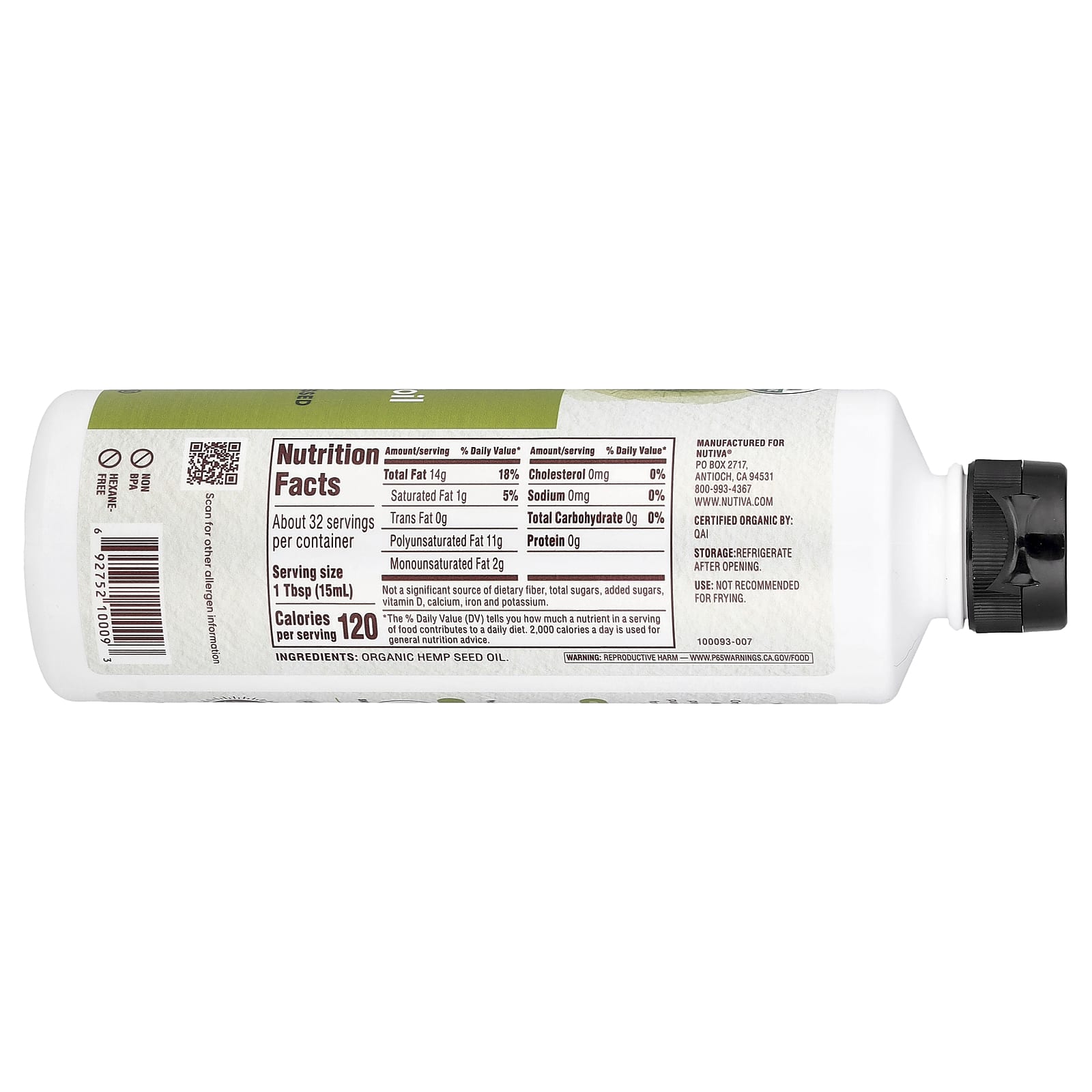 Органическое конопляное масло Nutiva содержит 11 г омега-3 и 6 в одной порции, включая АЛК и ГЛК. В процессе полностью натурального холодного отжима получается чистое масло с ореховым вкусом, которое идеально подходит для ежедневной добавки в смузи, салаты, соусы и многое другое!