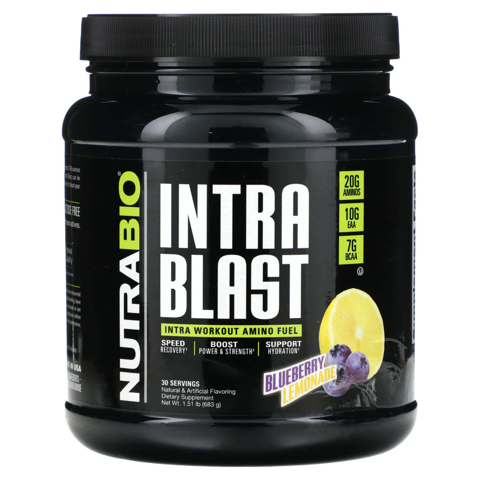 NutraBio, Intra Blast, аминокислотное топливо для приема во время тренировки, черничный лимонад, 683 г (1,51 фунта)